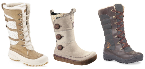 The boots are made of leather and nylon with a stout rubber sole. For hiking and snowshoeing, these are the most appropriate in the mix. You can cinch them on tight. They are the best boots here for true outdoors use — though stylish enough for everyday wear as well. $150, www.timberland.com