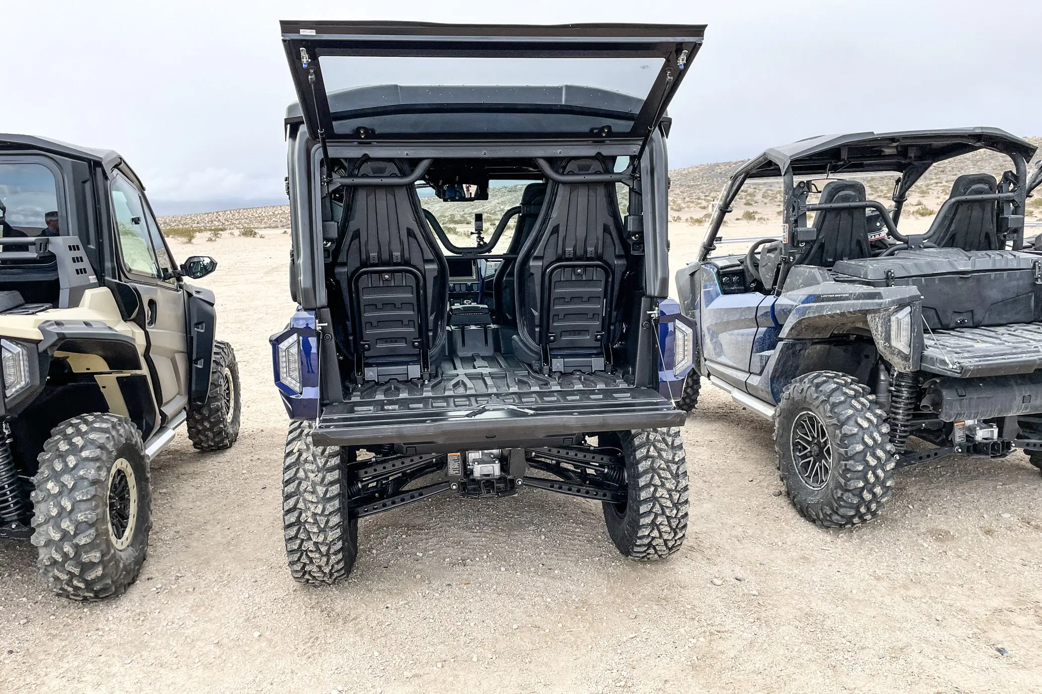 The latter was a four-passenger UTV — great for family rides, with back seats that slide forward for more cargo room or back to seat friends, kids, or pets. Everyone gets adjustable seat belt heights, which is something some competitors don’t offer.