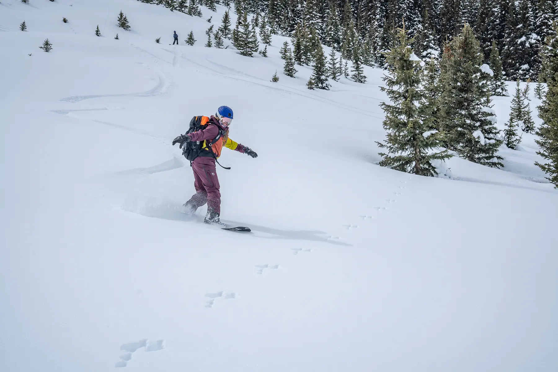 Looking ahead, the variables I still need to test this splitboard on include traversing across and carving down icy faces. That said, I’ve tested the Women’s Descender solid all-mountain snowboard in-bounds, and it’s one of the best designs I’ve ever ridden for traversing across concrete slopes, offering excellent edge hold and forward energy. The splitboard is loaded with the same technical features, so my expectations are high.