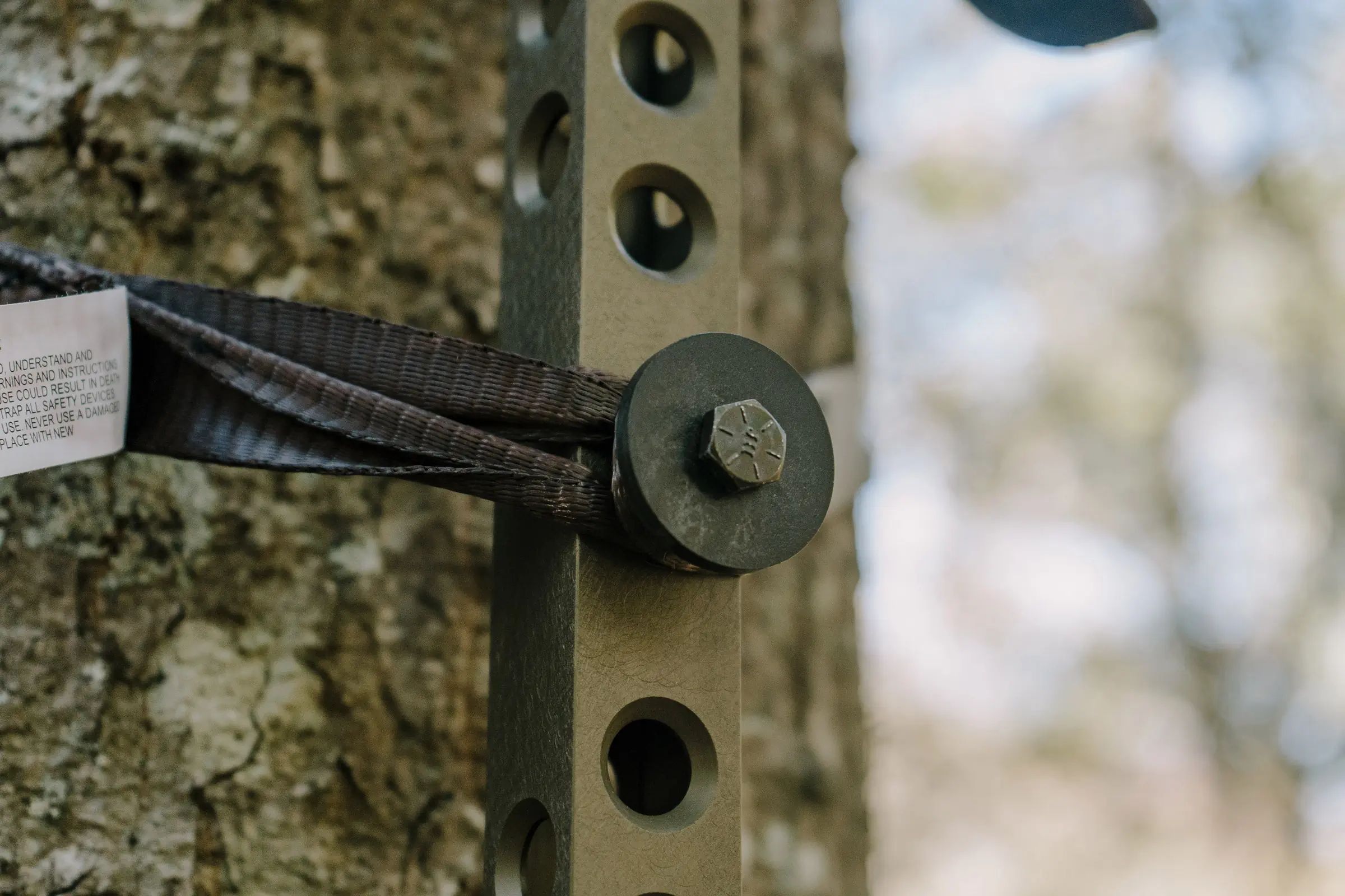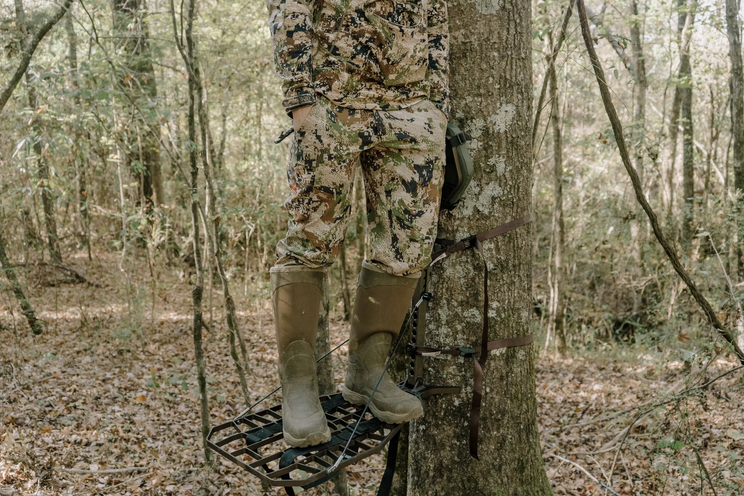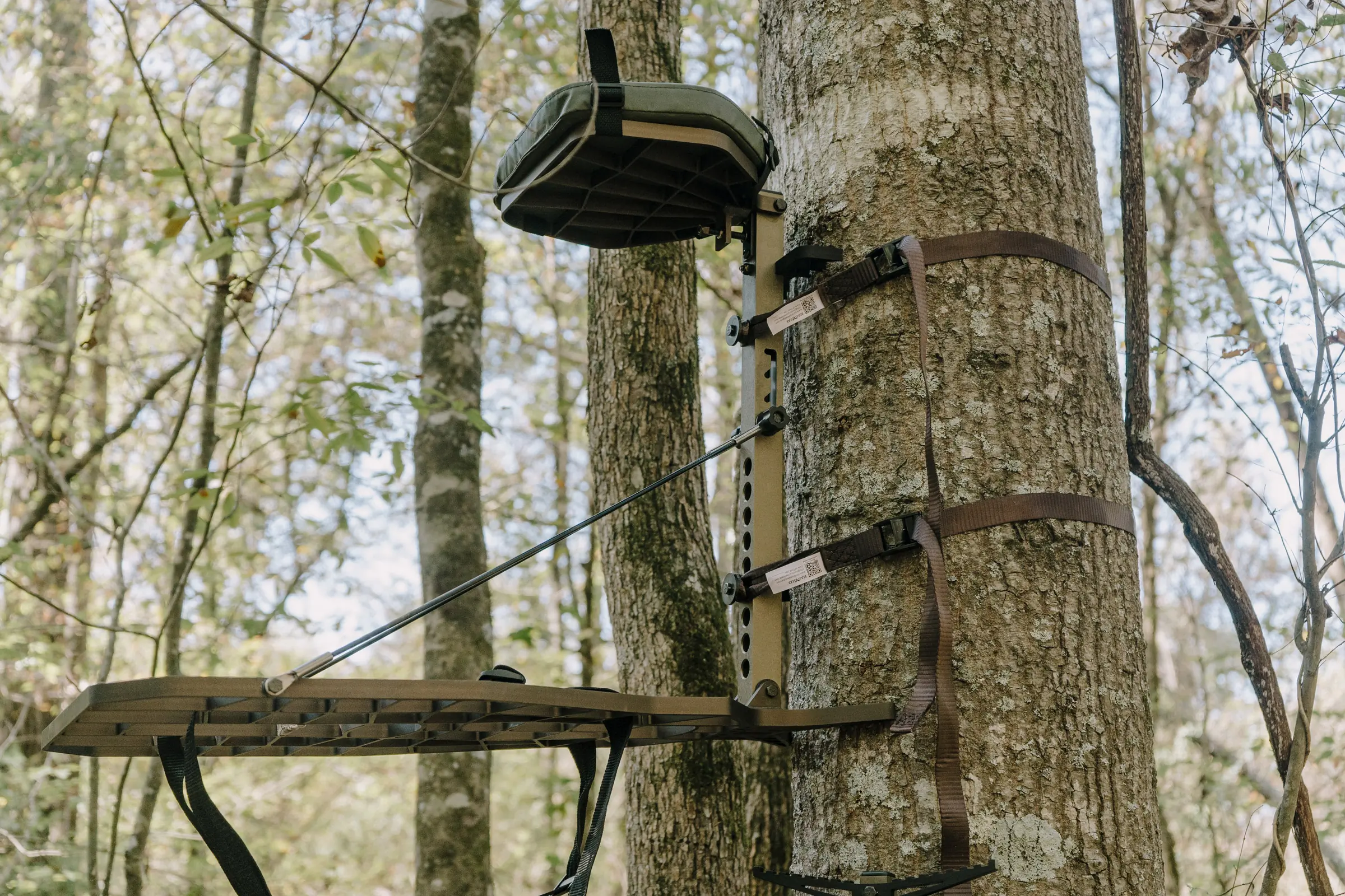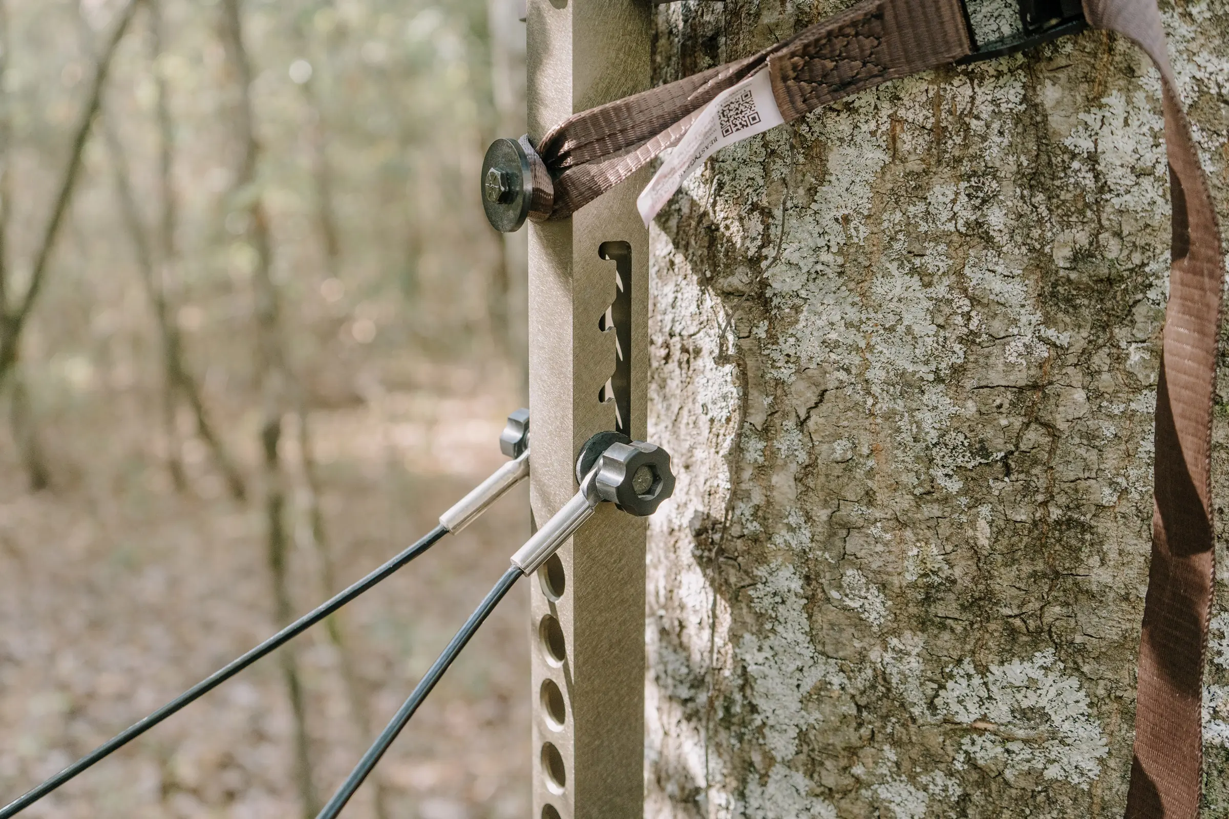 Getting tight to bedded deer won’t do you any good if your stand creaks or tings every time you bump it. Using Stealth Strip or other aftermarket silencing materials is a must for this setup, otherwise, it’ll sound like you’re ringing a bell every time the climbing sticks touch.