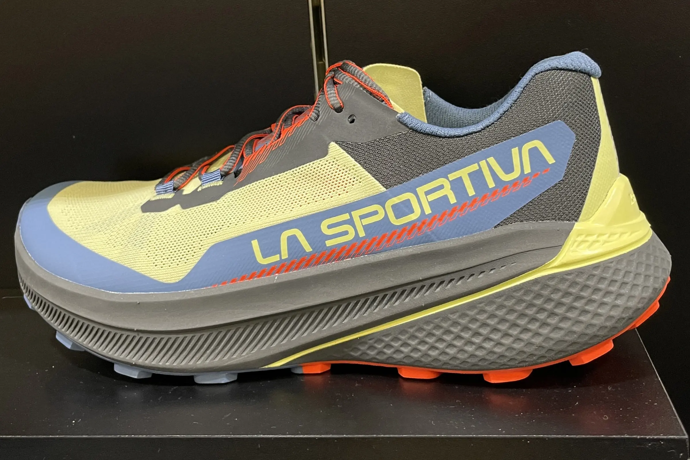 This is an all new midsole offering from La Sportiva, which in the past followed a very European-minded super firm and ground-feel oriented foam. The Prodigio uses a supercritical midsole foam called “X Flow” — a soft and responsive cushioned foam for long runs.