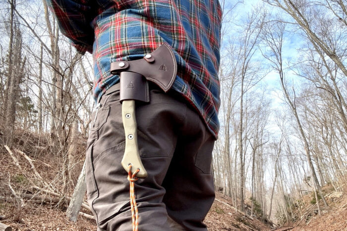 I tried to mix up my carry methods, so sometimes I would carry the Hammer Hawk on my pack and sometimes I’d carry it on my belt. In both cases, I had zero issues transporting the tool, but found that for ease of access carrying it on my belt was the way to go. I preinstalled the leather belt frog before heading out, and slipped the Hawk into it when I got where I was going.