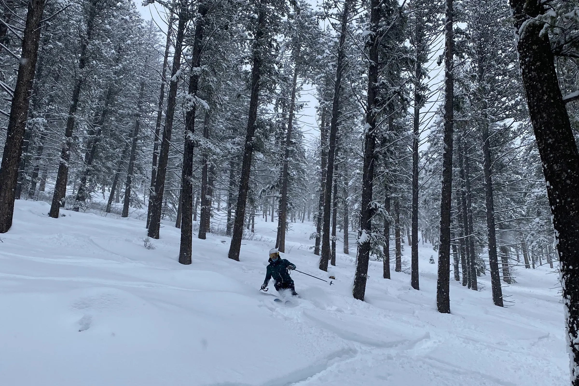 I hadn’t expected so much snow. So I’d brought the Peaks, not the Sakanas. It was the best day of my ski season. I chased three locals all day long, zipping between aspens and firs, slashing wide open bowls, and popping off little booters hidden everywhere.