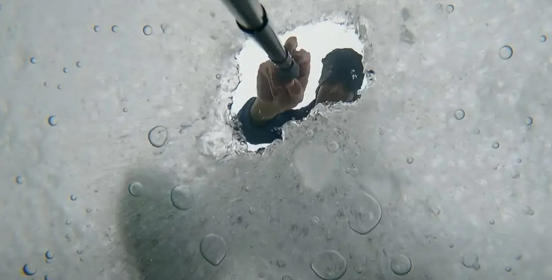It’s a novel maiden voyage for the tent. YOGOMAN loads it up in a sled, heads to the Matanuska-Susitna Valley, and hits the ice, skating to his lakeside destination to assemble his shelter. Hot tents, like this Arctic Oven, use wood-burning stoves to generate heat and keep occupants warm deep into negative temperatures. They’re great for backcountry skiing, hunting, and, apparently, backcountry wild-ice skating trips.