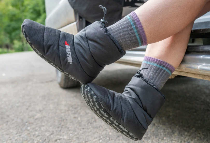 The first time I wore the Baffin Cush Booty was on an early spring camping trip in the Rockies, when patches of snow still lingered on the ground and nights dipped well below freezing. I had tossed them into my pack at the last minute, thinking they might come in handy if my feet got cold.