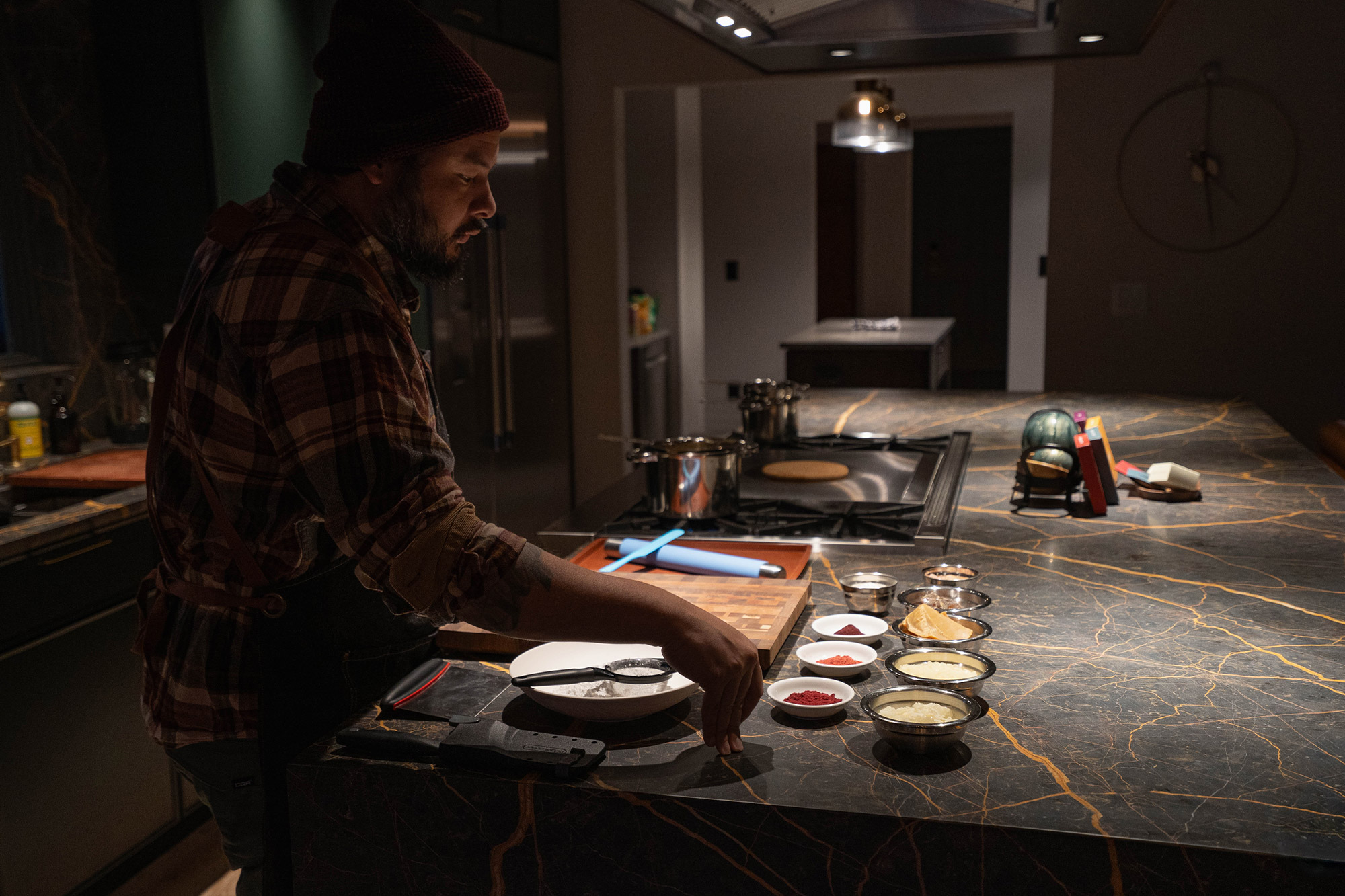 The family moved to California seeking opportunity and a better life. A job at a restaurant steered him into a career based around food. In Alaska, Mal leaned into his chef skills and made the crew dinner one night. A “forest-to-table” theme meant local ingredients and found items from the woods. There was a bowl of spruce resin to try raw. Berries picked on our hike were a garnish on another dish.