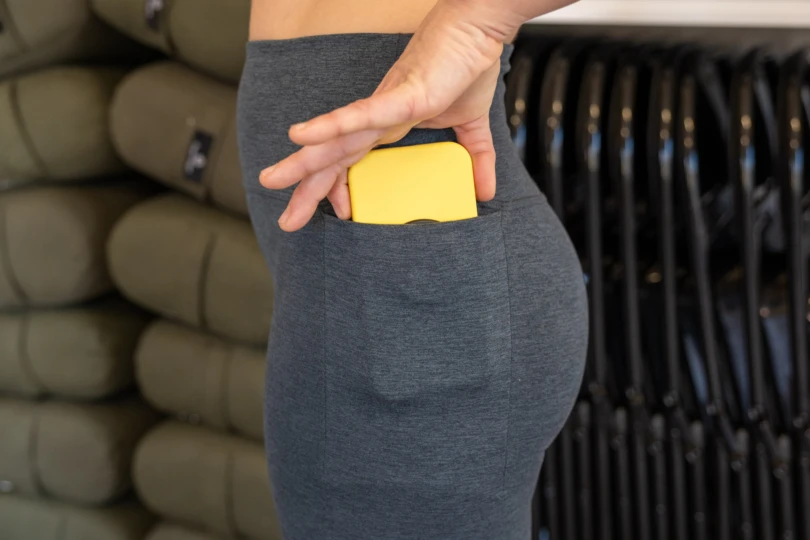 We love large side pockets on the thighs of leggings, but not all activities need pockets. For daily use and running, pockets can be pretty useful. For a yoga class, our phones and keys are in the locker room.