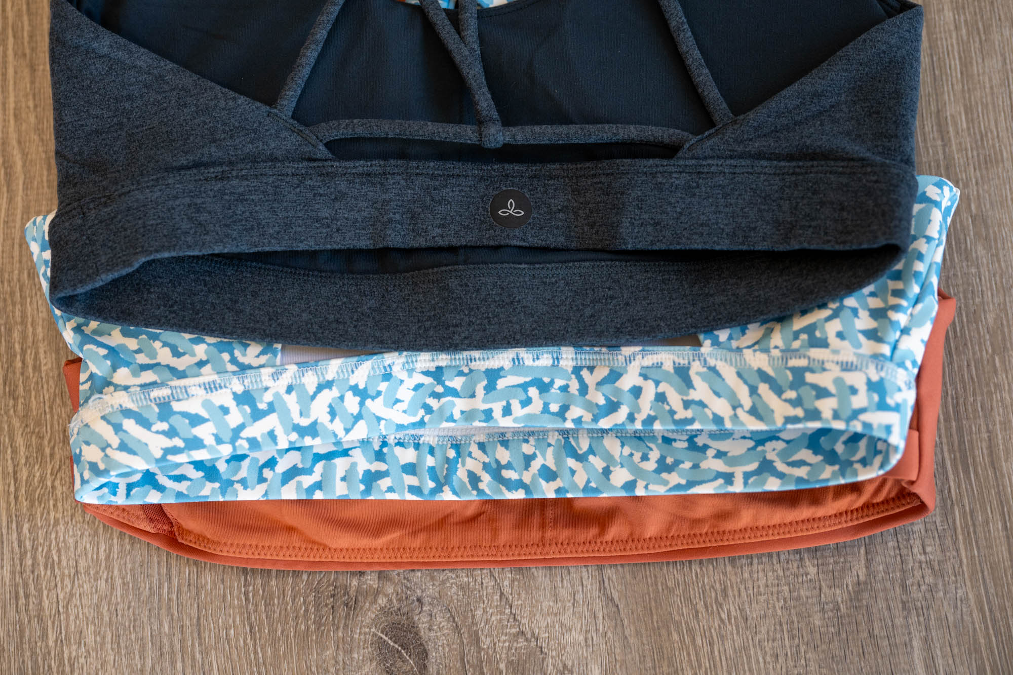 Almost all of these sports bras had a tag we pulled off inside (typically attached to the seam between the back and front on one side), as well as a hang tag with a little more info.