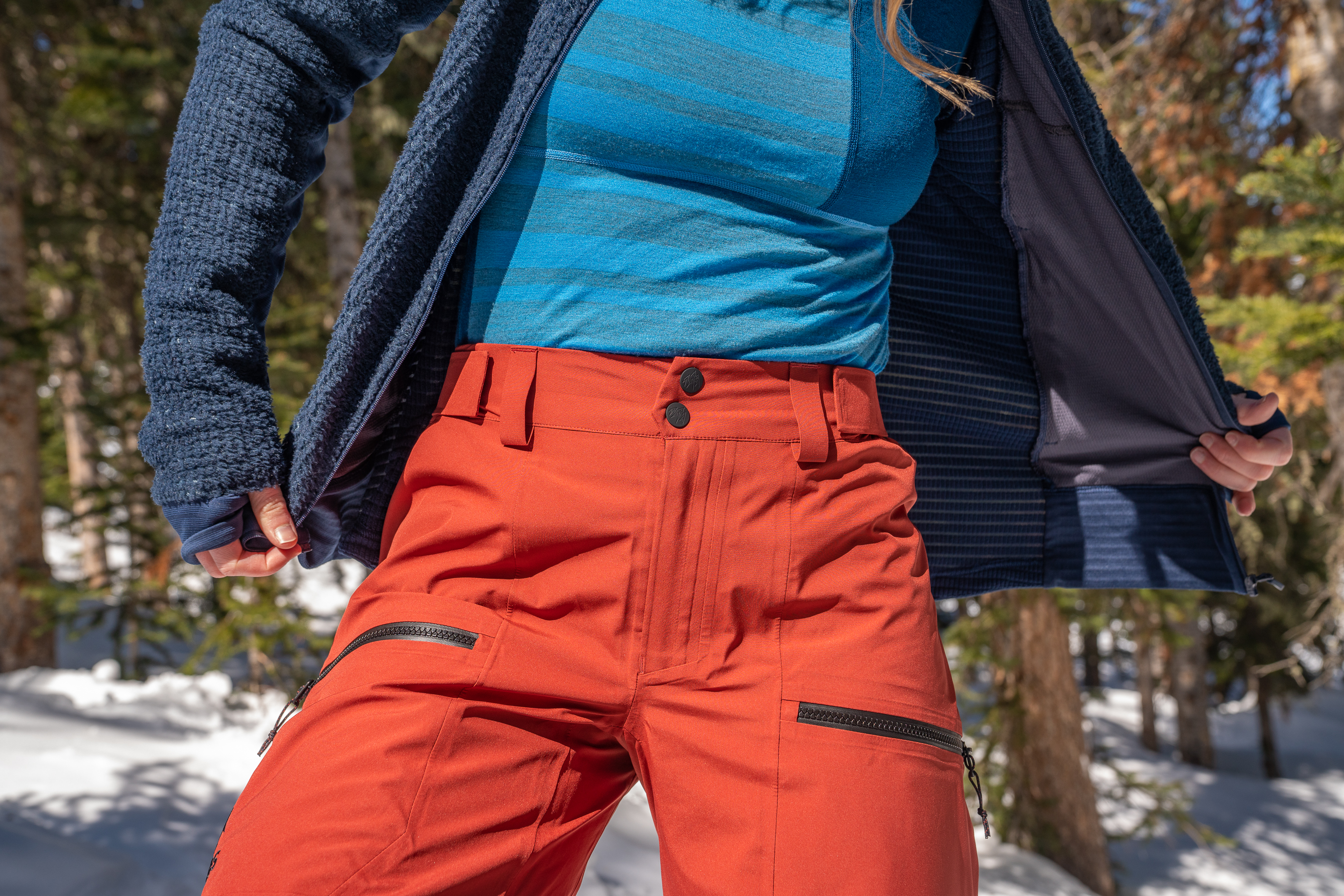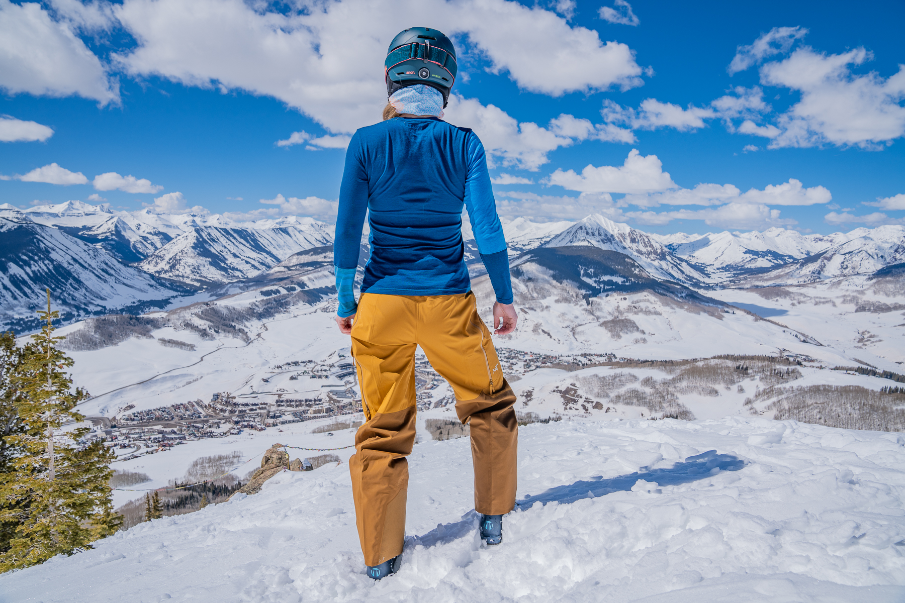 Most base layer pants reach down to your ankle but some capri styles hit below the knee, near the shin bone. We like a cropped length for easy layering with our socks and ski boots. The Ortovox 185 Rock’N’Wool Short Pants reach the knee and eliminate the need to layer our pants over socks.
