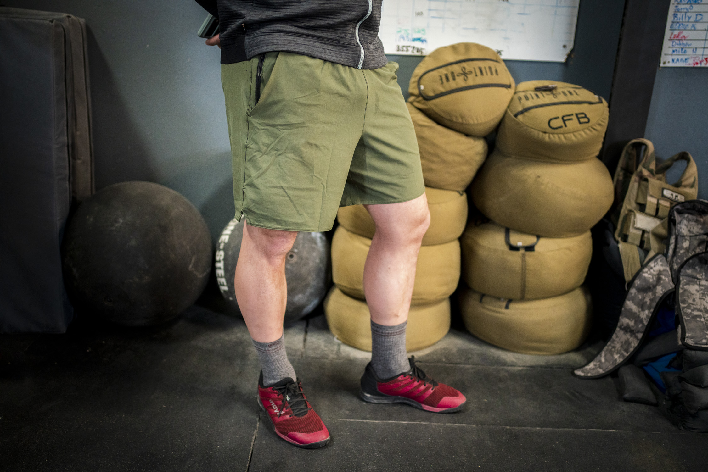 The first thing we noticed when we put the shorts on was the texture. The material is slightly rougher than the Vuori Banks Short, but not so rough that it was uncomfortable. It made the shorts seem more durable right out the gate. And after three months of dragging a barbell up those shorts, climbing ropes, dropping to the floor for burpees, and performing hundreds of ab mat sit-ups, that material still looks brand new.