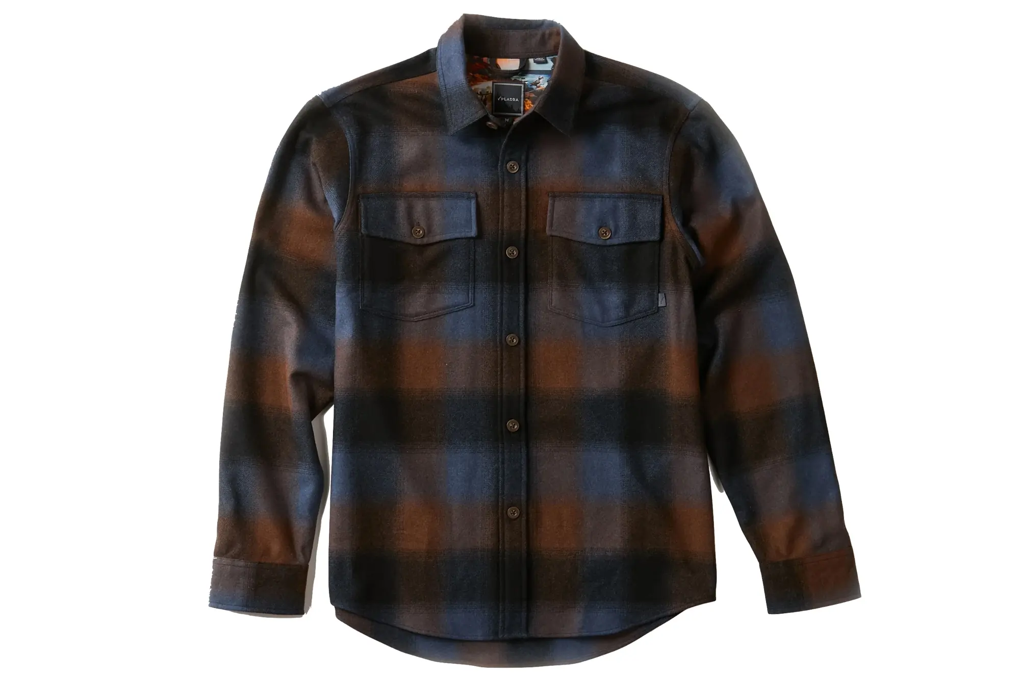 | LIVSN Benchmark Field Flannel | $199 | 40% GRS certified recycled Seawool polyester, 60% cotton | 264 g/m² | 1 lb., 4 oz. | Relaxed but feels tight in shoulders; Expect some shrinking |