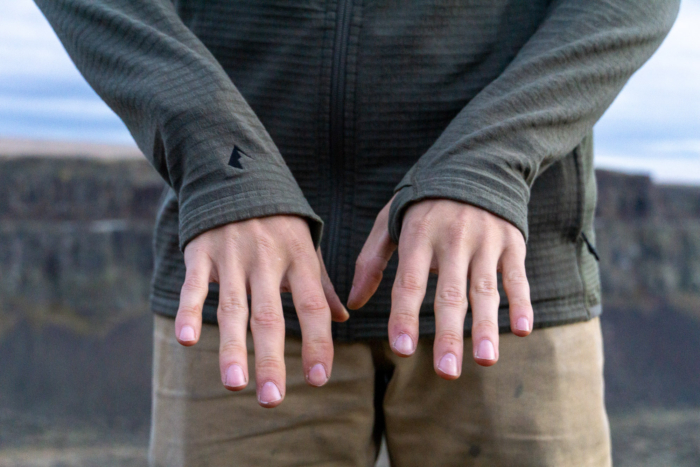 If you aren’t buying an insulated layer, pay attention to the warmth level of the fabrics used. For example, a midlayer hoodie with merino construction or a merino liner can still provide lots of warmth and versatility, even if it isn’t stuffed with insulation.