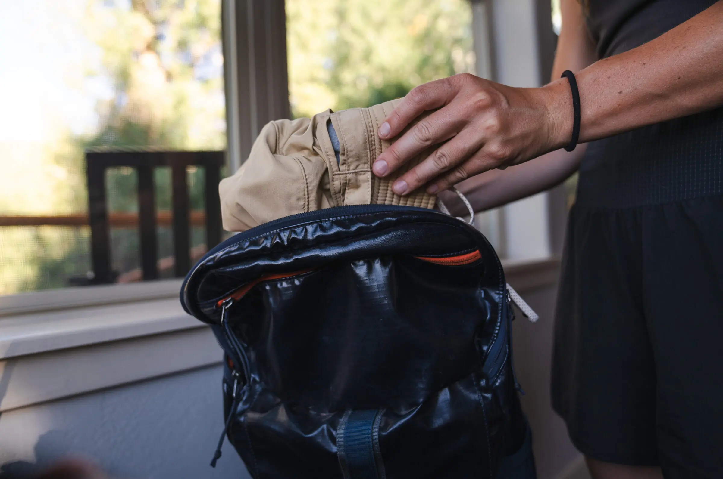 A good travel hat should bounce back into shape after being unpacked. Nylon and polyester hats tend to wrinkle, but they often smooth out after a few hours in warm or humid weather. Sturdier styles like the Filson Packer or the Tilly Wanderer are designed to hold their shapes, even after being squished in a bag. Just give them a bit of time in the sun and they’re usually good to go. If you prefer not to pack your hat in a suitcase, you can always clip it to your backpack or carry-on with a simple hat clip or carabiner.
