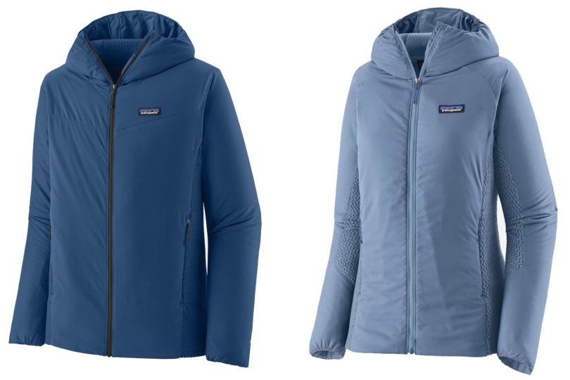 | Patagonia Nano Air Hybrid Light Hoody | $299 | 40-g FullRange® 100% recycled polyester | 11.8 oz. | 2 handwarmer pockets with invisible zippers | 1.6-oz 30-denier 100% recycled polyester ripstop with DWR finish |