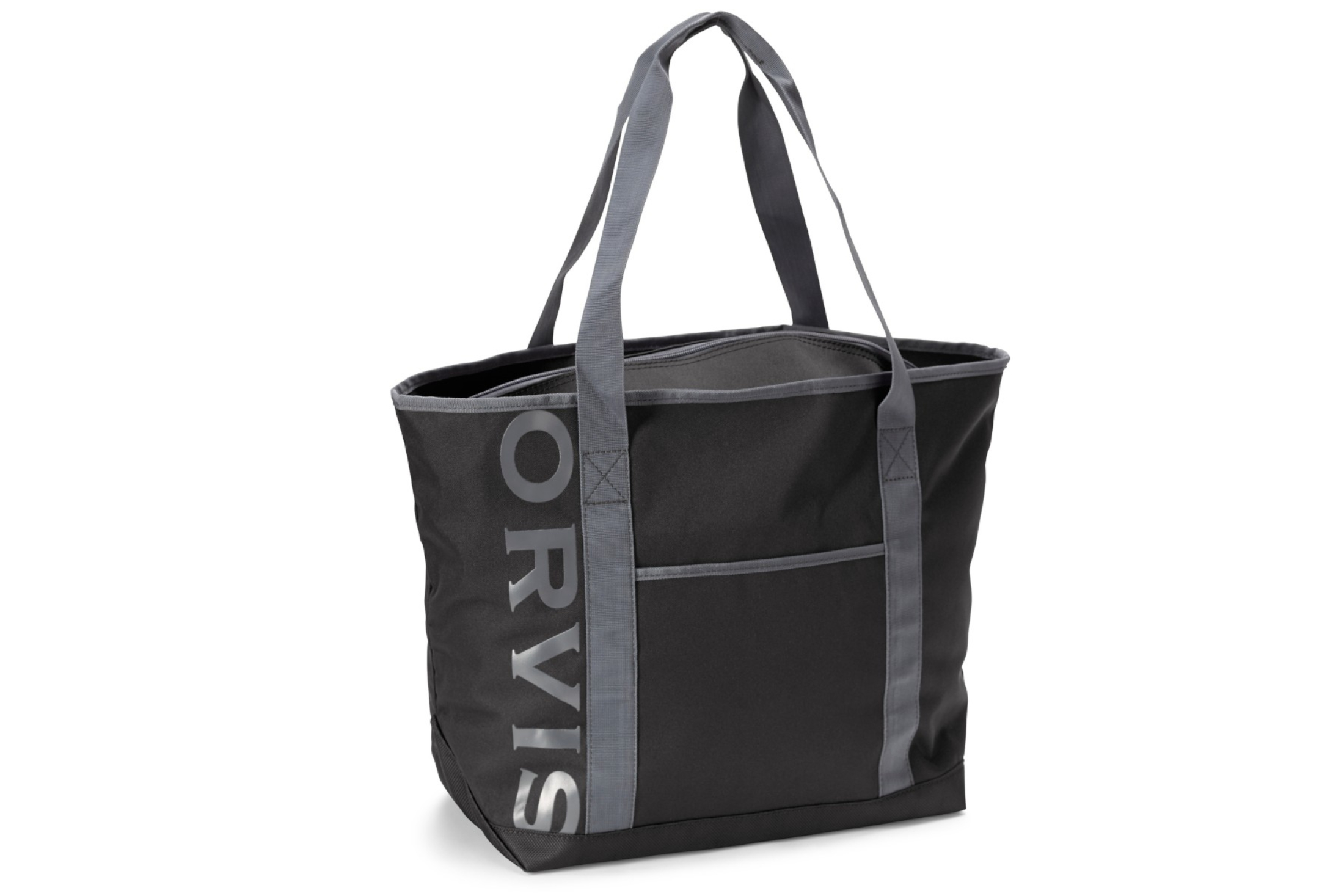 Totes provide a simple solution for packing essentials or oddly sized items during travel. They make a nice reusable shopping bag, too. This Orvis tote is made with a heavier polyester for durability, and its PVC backing means it wipes clean more easily than a fabric bag.