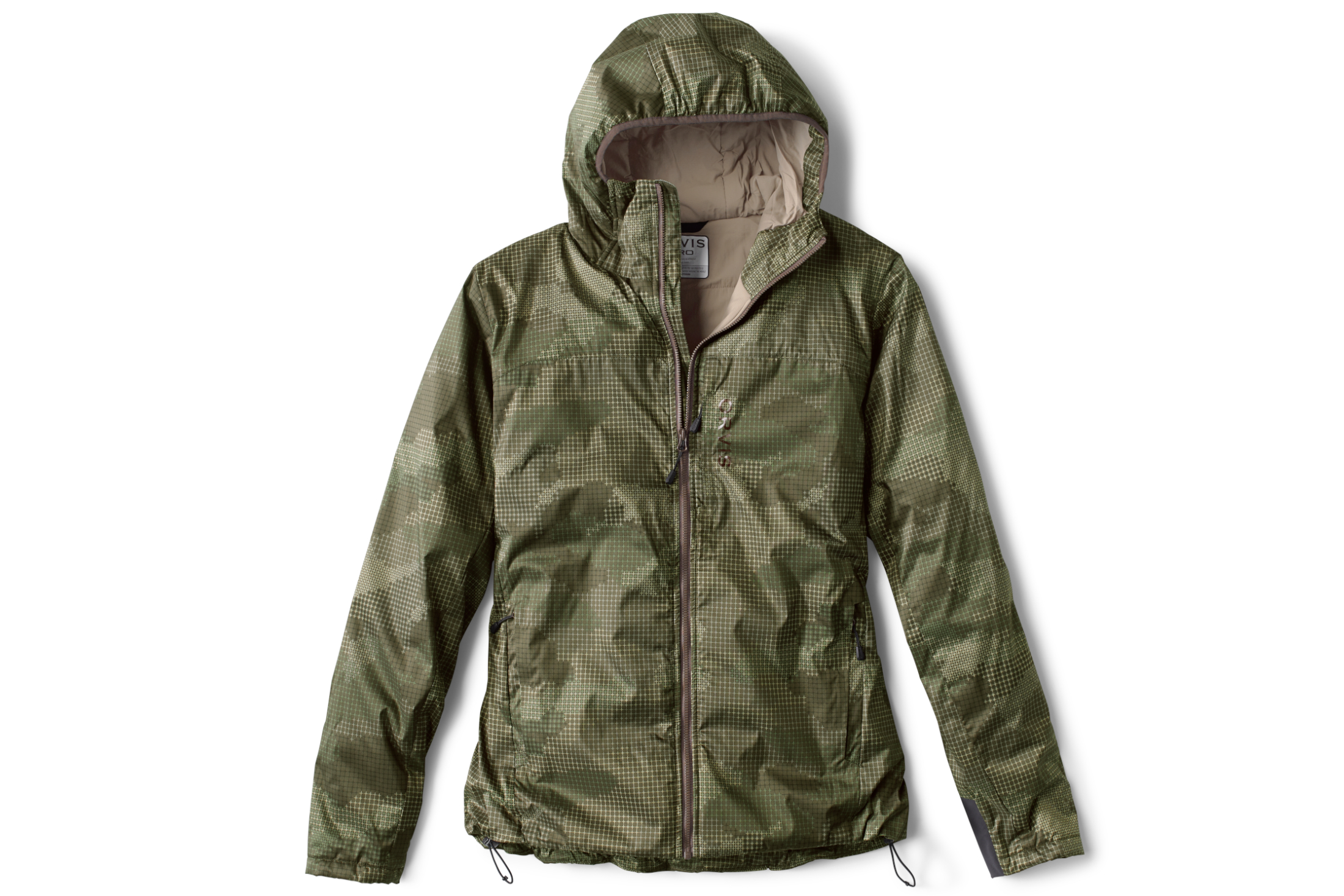 This lined and insulated fishing hoodie is part of the Orvis PRO collection. That’s code for dripping with high-performance tech, like the jacket’s body-mapped stretch insulation (80g PrimaLoft Gold Active) with breathable insulation (80g Polartec Alpha insulation) in the side panels and underarms. These insulations work together to regulate body heat and move moisture out through the sides to provide greater comfort in a wider range of temps.