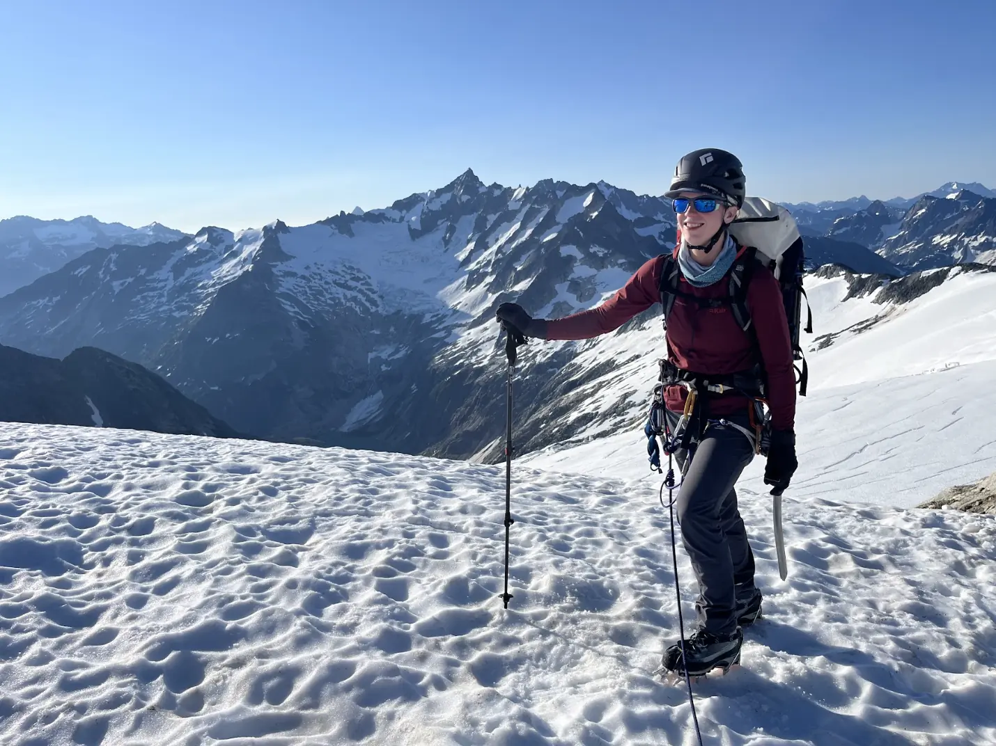 I recently guided a 4-day mountaineering course to Eldorado Peak in the North Cascades, and I packed the BD Alpine Pants as my primary pant layer. This trip involves a steep approach through the forest, scrambling through a boulder field, slogging up snow slopes, and moderate glacier travel to an iconic summit.