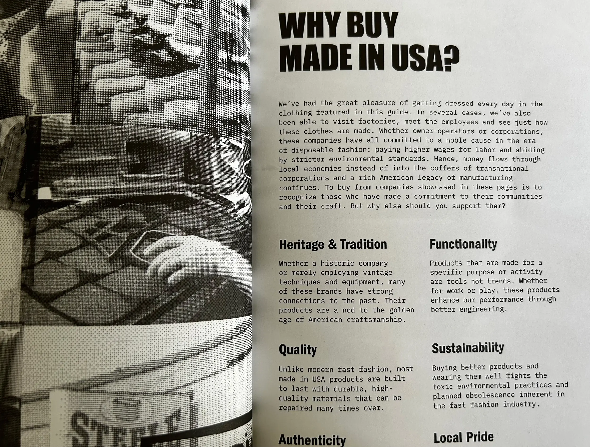 This section is organized alphabetically by brand. It lists the year the company was founded, its website, contact info, and a short summary blurb. But despite the glamor of this section, the real meat and potatoes of “Crafted With Pride” is section two — a literal yellow pages of American-made gear — dubbed the “directory.”