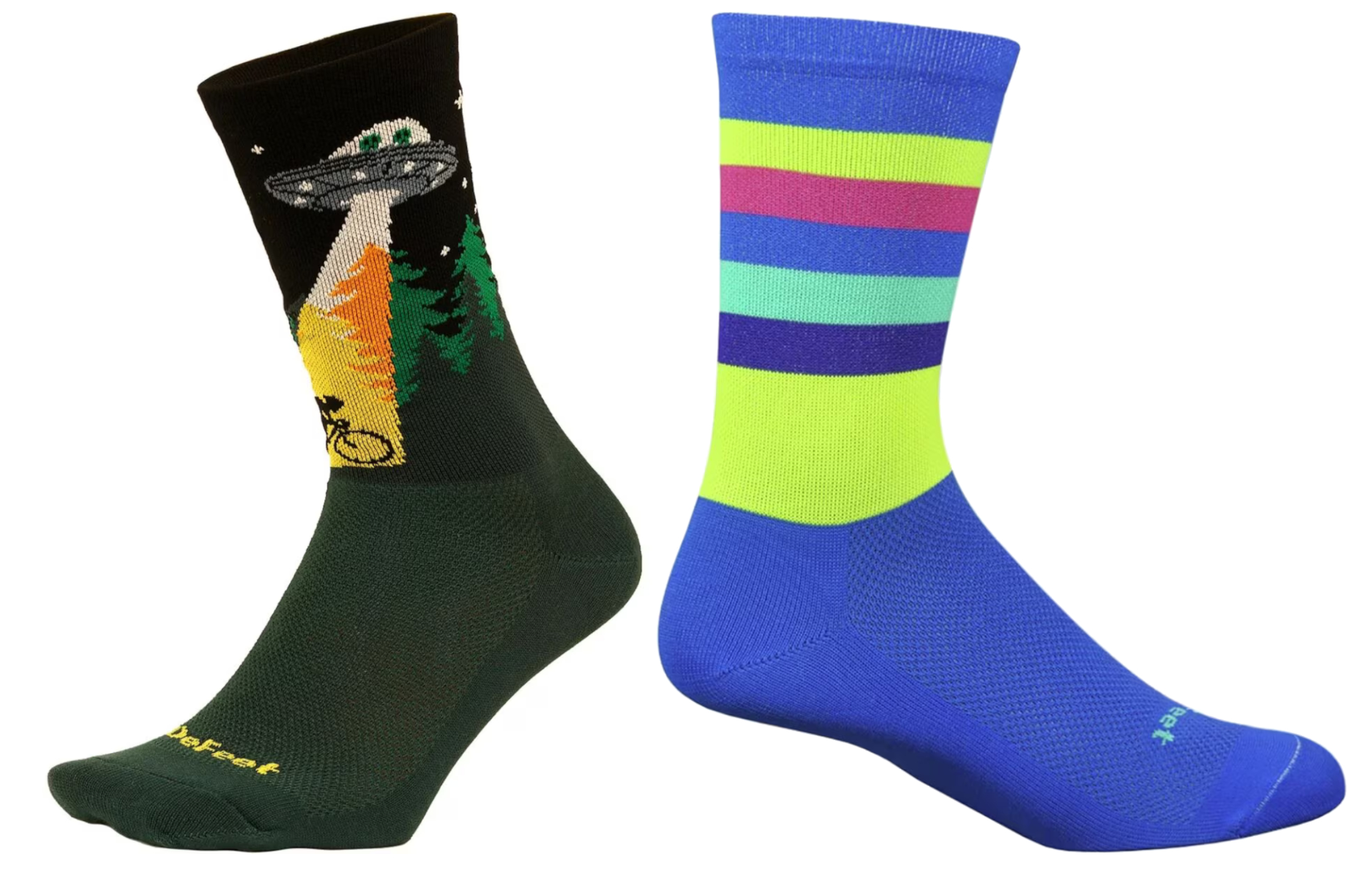 These 6-inch socks are made to keep you comfortable during long days on the pedals. The recycled polyester materials help wick sweat away from your feet while thinner mesh zones on the top of the foot and toebox aid their breathability.