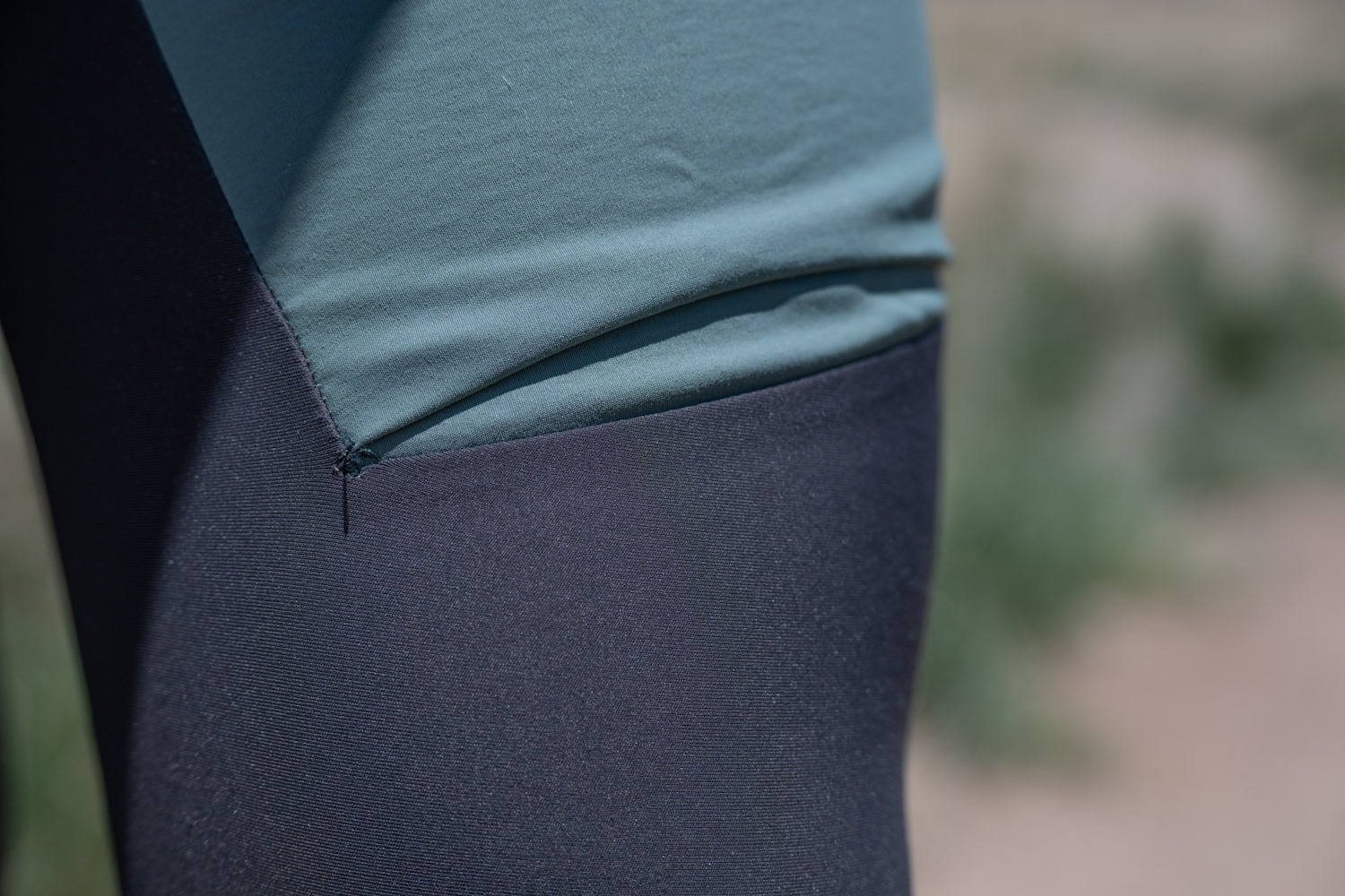 The zipper also has an underlay to keep elements out and the zipper off my skin. The elastic bottom hem has a silicone pattern on the inside. This keeps the tight in place and ensures it does move while I move.