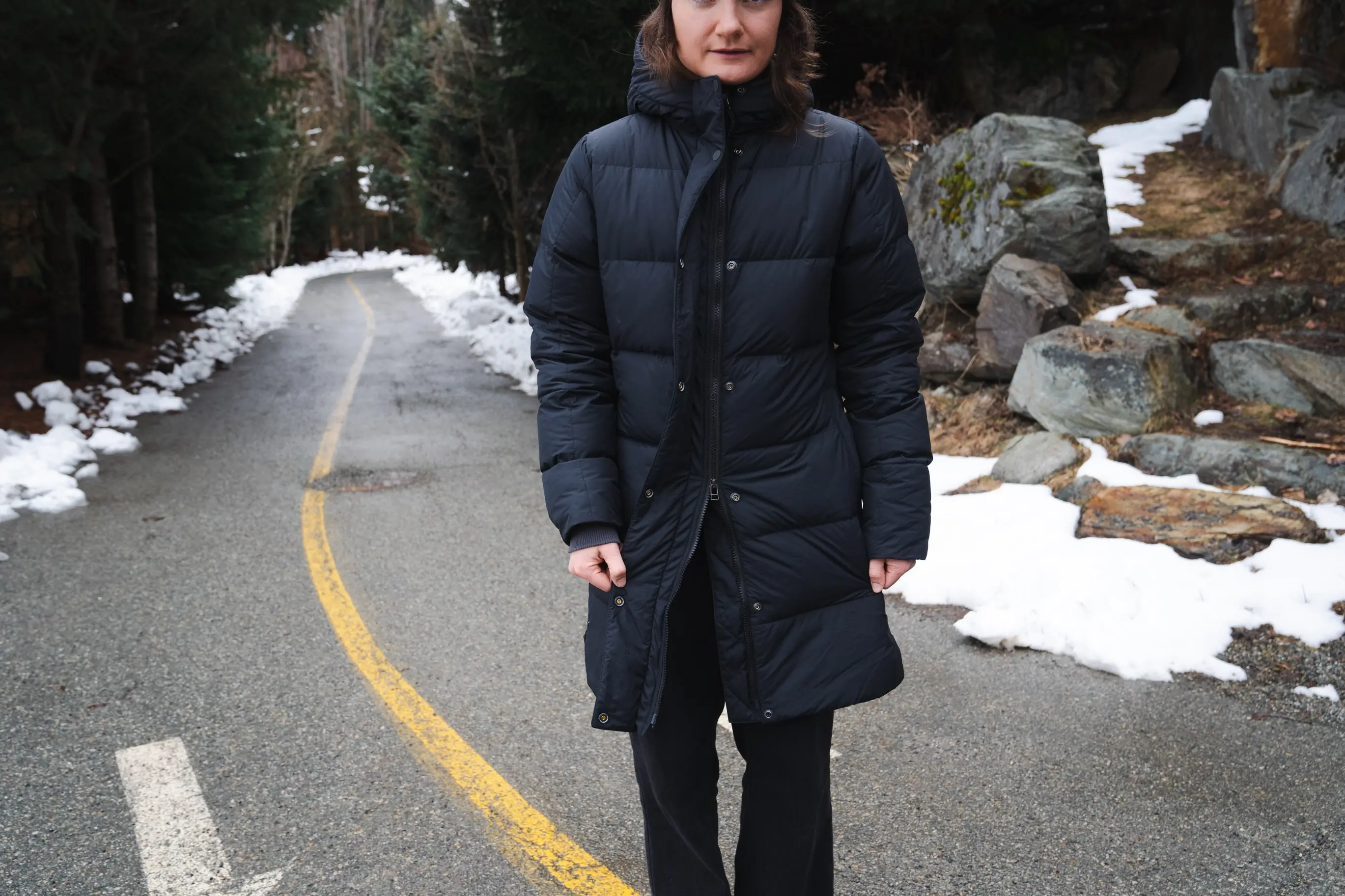 You’ll want to think about your preferred length — the longer a jacket, the warmer, but the less freedom you’ll have for big movements like if you’re shoveling the deck. You also might not need the warmth of a calf-length jacket.