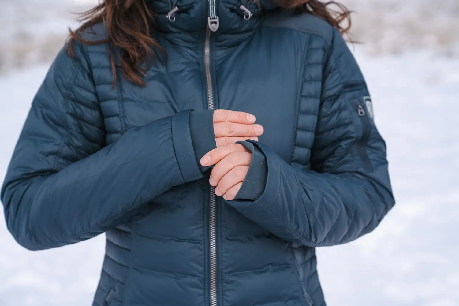 Down insulation is generally more compressible than synthetic insulation. Longer jackets and those with a lower down fill power will be less compressible. Generally, the larger the baffles, the harder the jacket can be to compress. The most packable options among our favorite winter jackets include the KUHL Spyfire Parka and Lands’ End Wanderweight Ultralight Packable Down Coat.