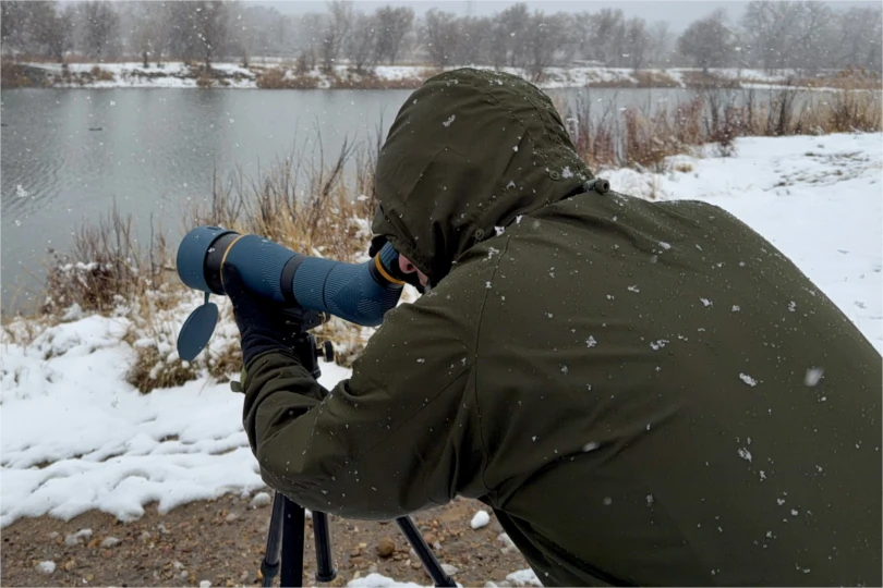 As an experienced birdwatcher, I’ve worn rain jackets with various layers underneath and even down-stuffed belay jackets when temperatures hit zero. However, I’d never used a jacket specifically designed for birding before testing the Halkon. My closest comparisons were my dad’s old waxed-canvas jackets that I wore while hunting.