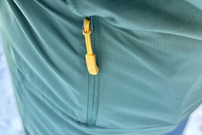 At first glance, the only thing missing on this piece are pit zips for venting. But this layer has proven so breathable on its own, I don’t think they’re necessary. And if you really need to vent this jacket, there’s a two-way main zipper.