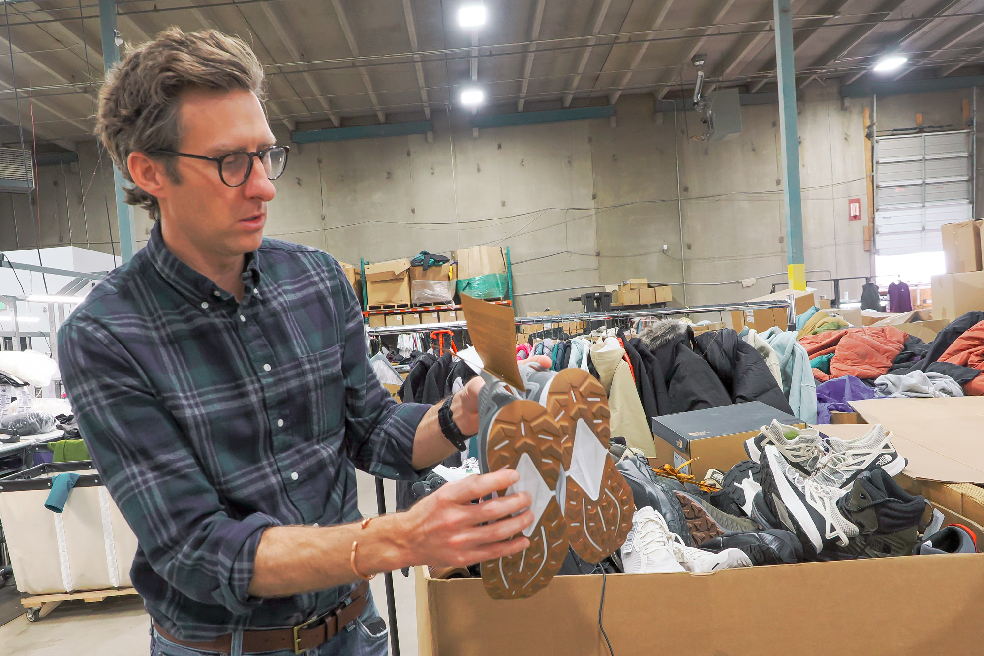 Back in the warehouse, rows of down jackets, ski bibs, and synthetic base layers sit boxed and tagged in organized bins, ready for redistribution. To the untrained eye, they look brand-new.