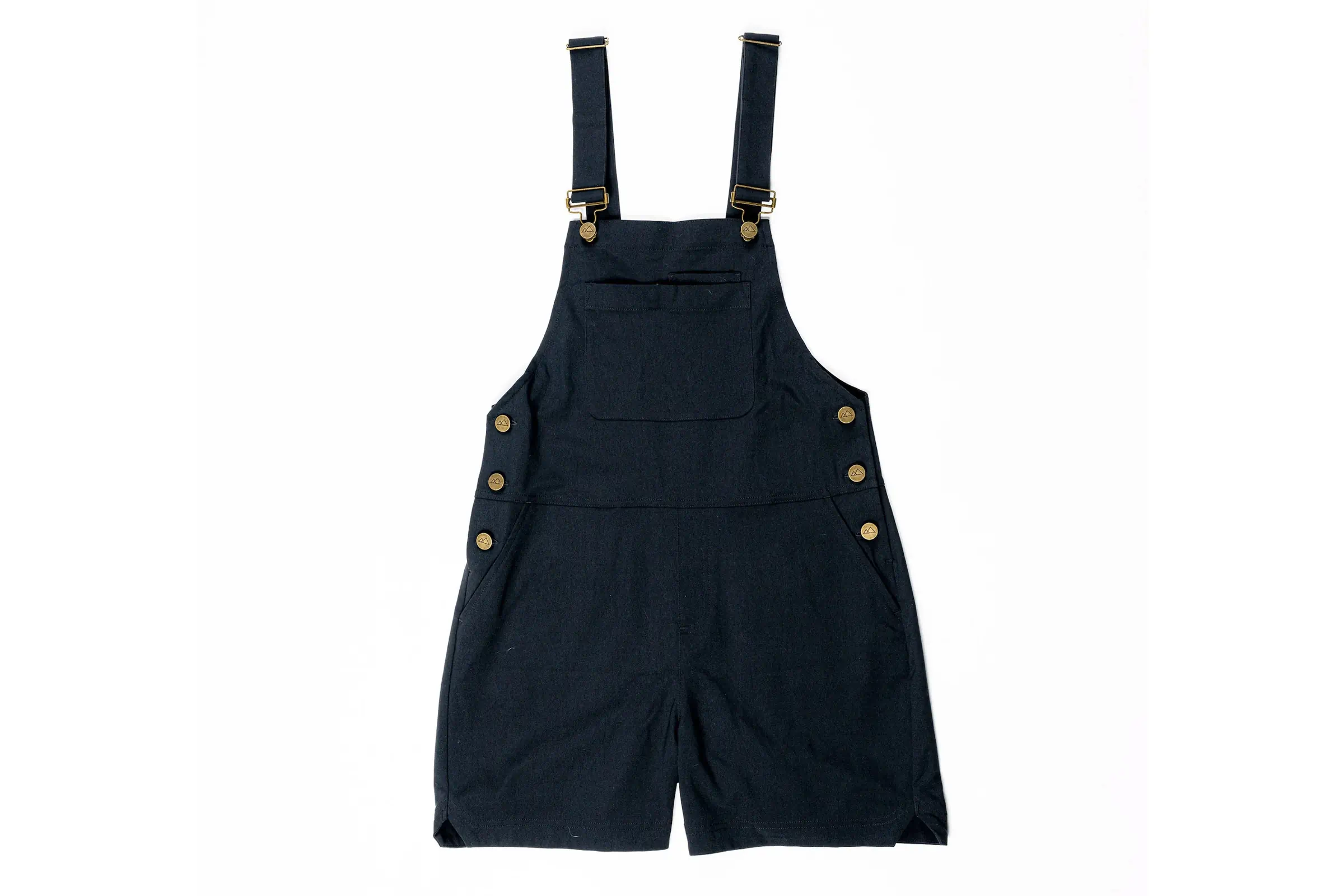 The Eeva Short Overalls come in a size range from 0 to 18 and have a 5-inch inseam. They also come in two colors: Golden (yellow) and Black.