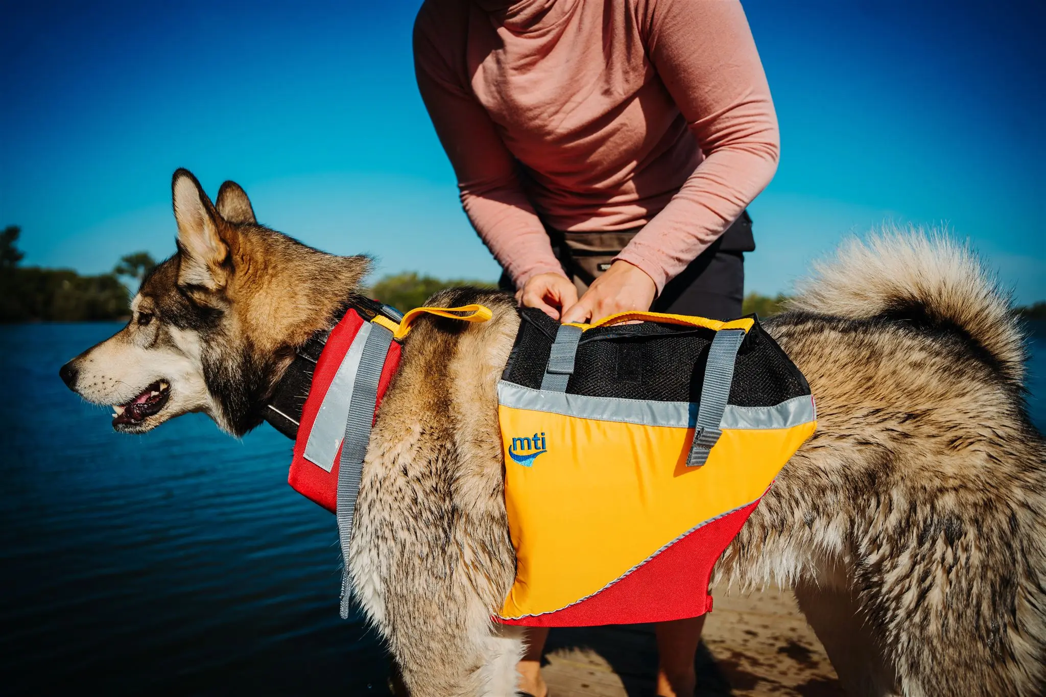 Some mid-tier dog life jacket options include the Kurgo Surf N Turf Dog Life Jacket ($45-65) and the MTI UnderDog Pet Life Jacket ($30-60). The Kurgo jacket is our top overall pick, as it offers excellent value for the price with superior buoyancy, multiple handles, and a highly durable design.
