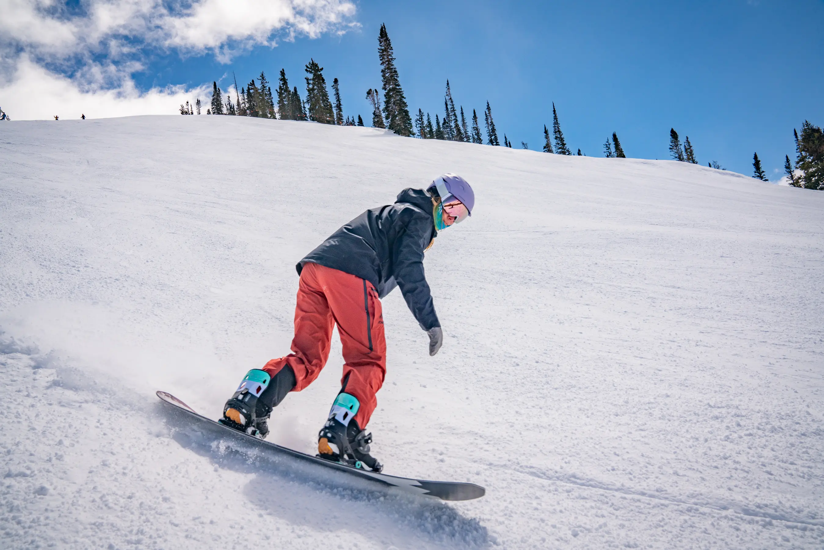 Freeriding snowboarders tend to use bindings with less flex, as the increased rigidity provides better edge-to-edge responsiveness during hard-charging lines and high-speed carves.