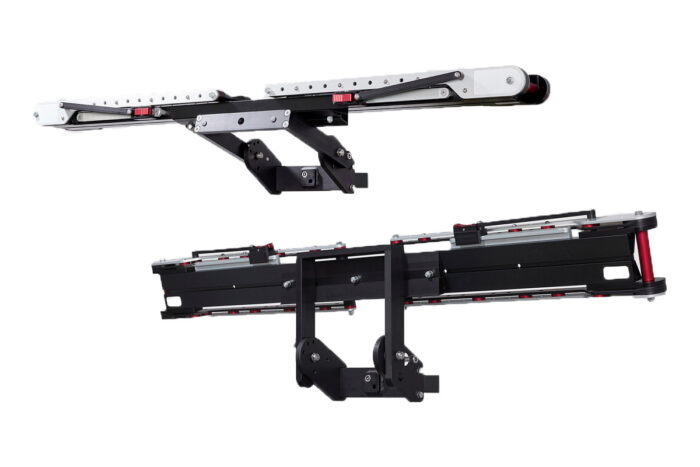 In addition to the beefed-up construction on the Xtreme Duty Single, the gap between the pivoting wheel arms is larger to leave space for e-motos like a Surron 110, as is the tire width capacity of the arms and the tray.