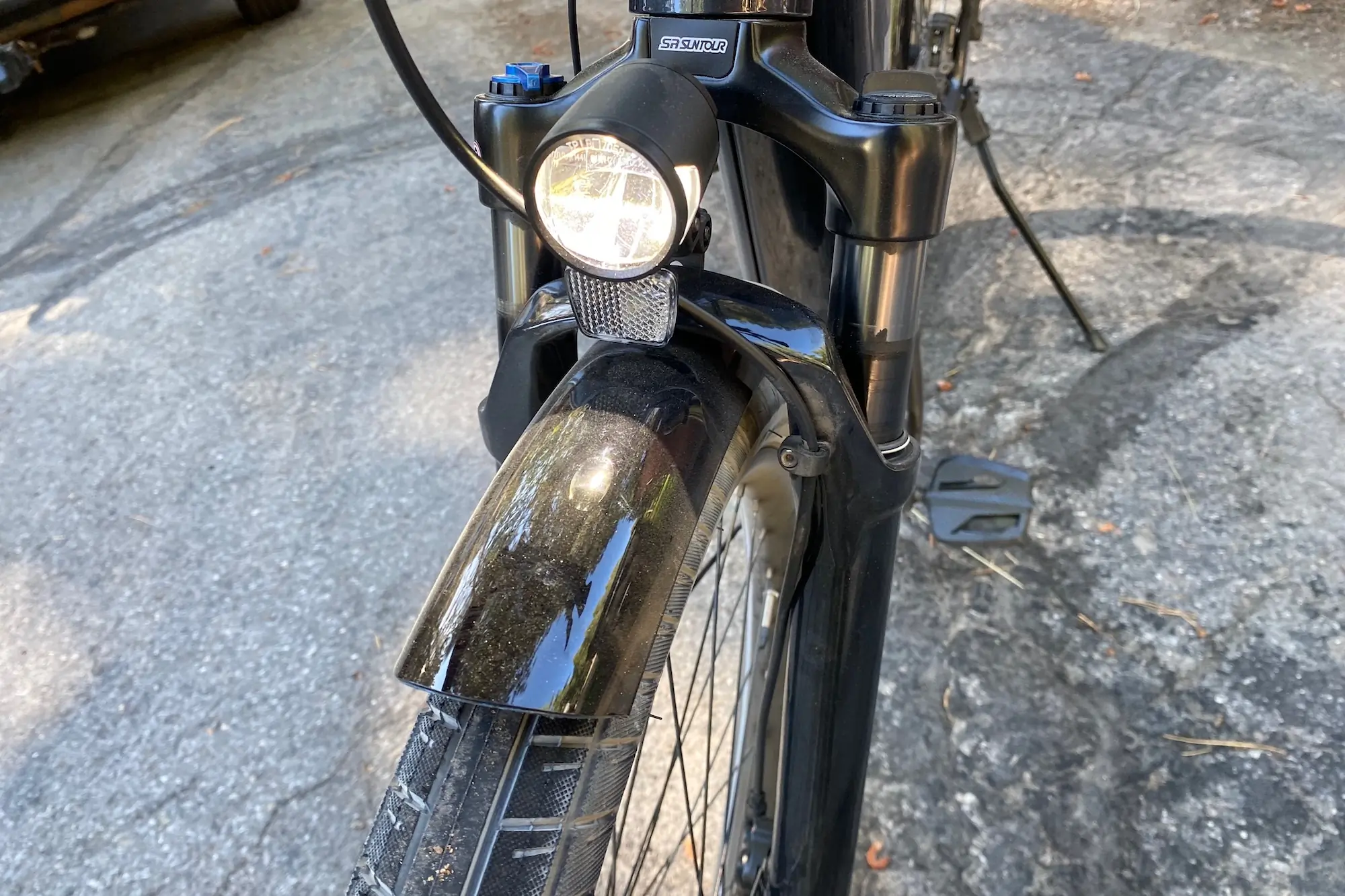 - Supension fork, fenders, lights, and rear rack included