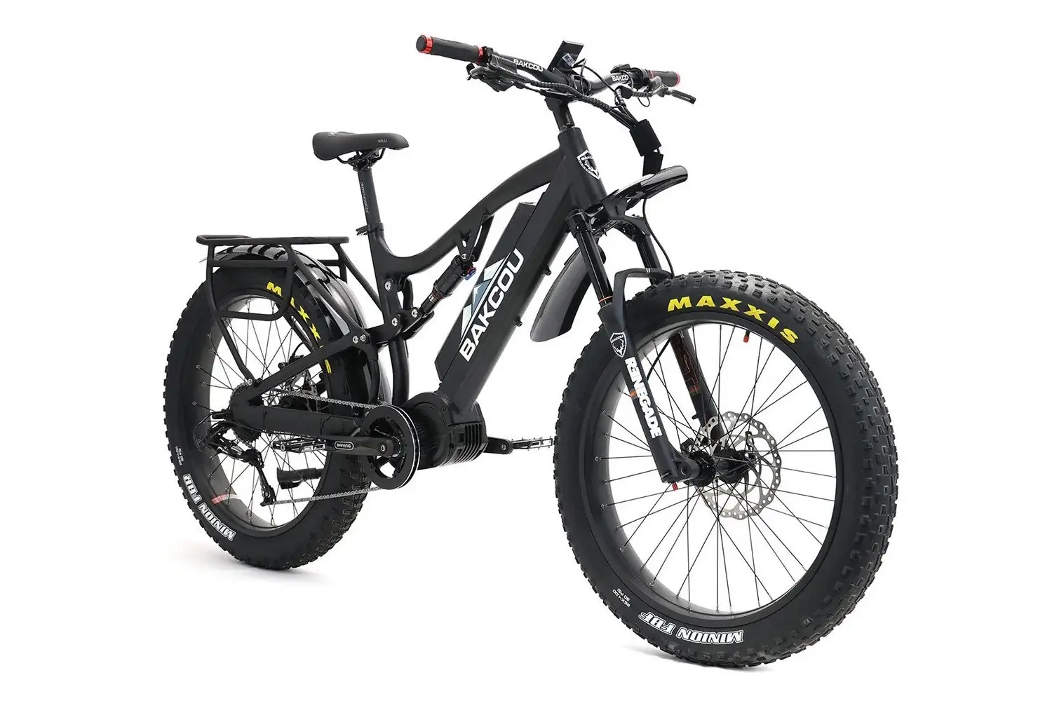 | Bakcou Storm | $5,599 | 70 lbs. | Bafang’s ULTRA mid-drive motor | 4 options between 840 and 1,200 Wh | Up to 65 miles | 120 mm front and rear | Shimano 9-speed | 300 lbs. |