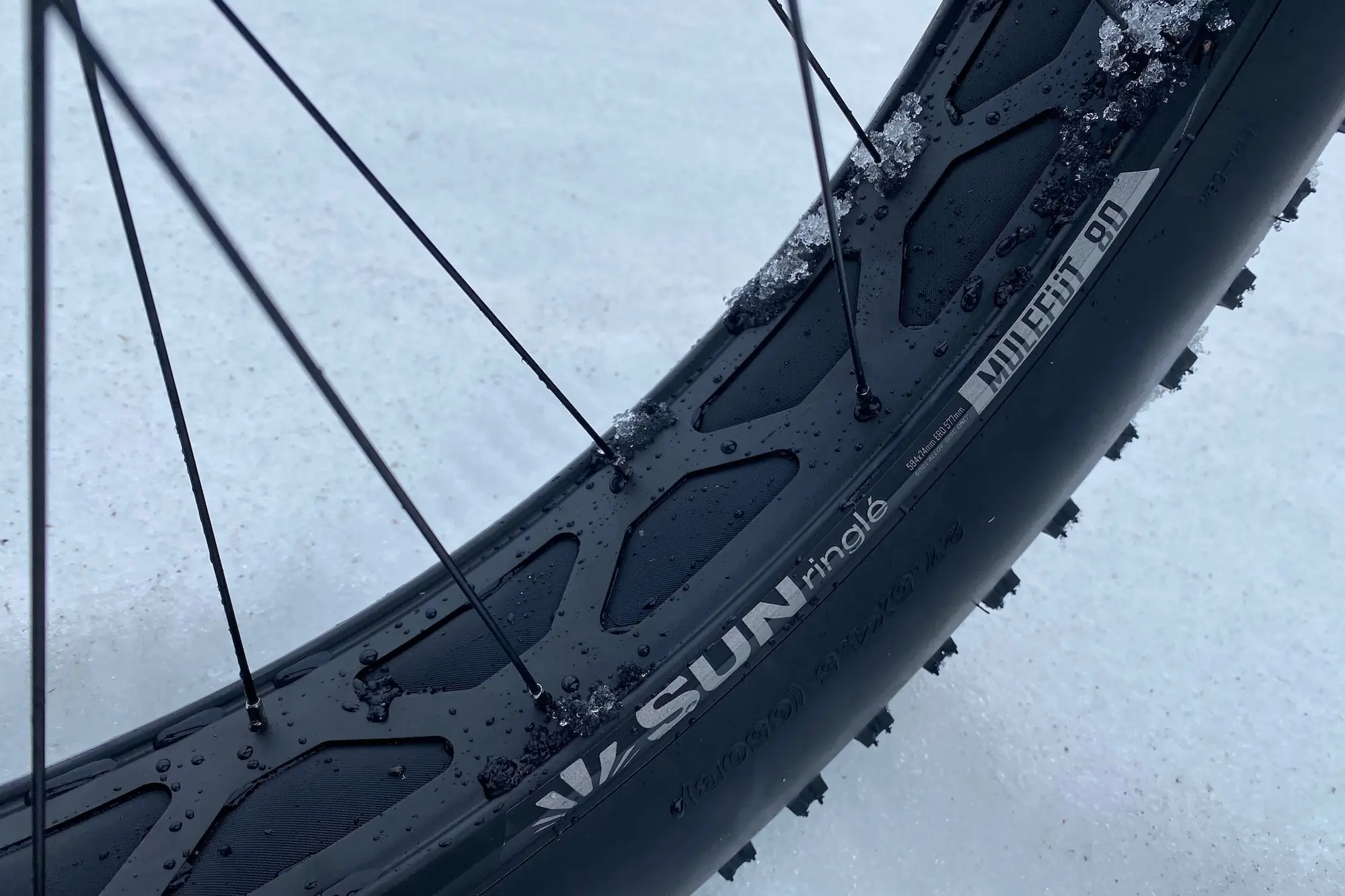 Compared to road and mountain bikes, fat bikes have super-wide rims. The wider the rim, the wider the tire you can fit on it. The wider the tire, the better you’ll be able to float across soft surfaces like snow and sand. Most fat bike rims are between 65mm and 90mm wide.