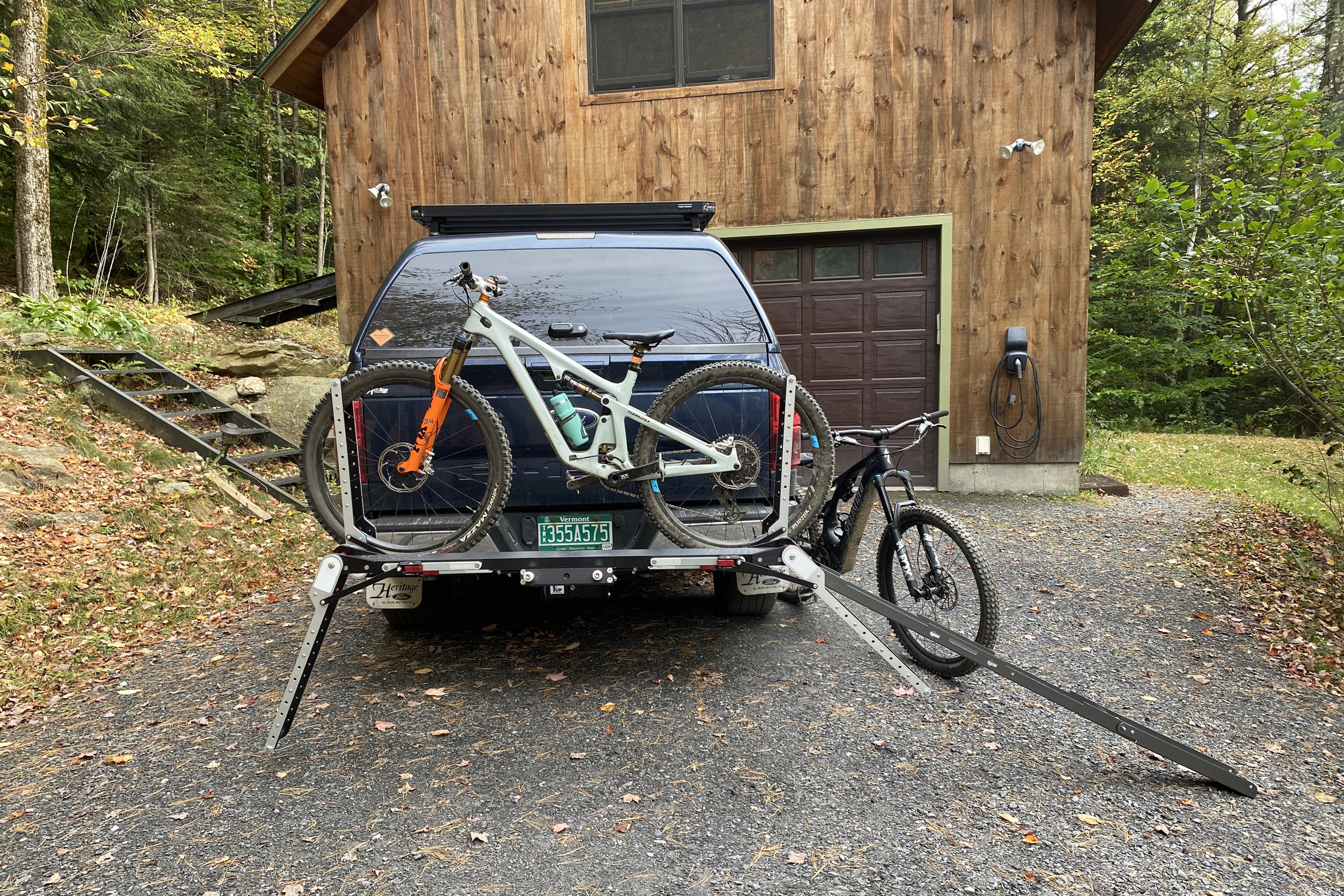 Another thing to consider is loading heavy bikes. There are a few models designed specifically for use with e-bikes on the market nowadays. These are often clunky, and most secure bikes by clamping directly to the frame. Other racks, like the Kuat Piston Pro X, Yakima StageTwo, Hollywood Racks CrossTrack, and the 1UP-USA Super Duty, are all compatible with aftermarket loading ramps sold by their respective manufacturers.