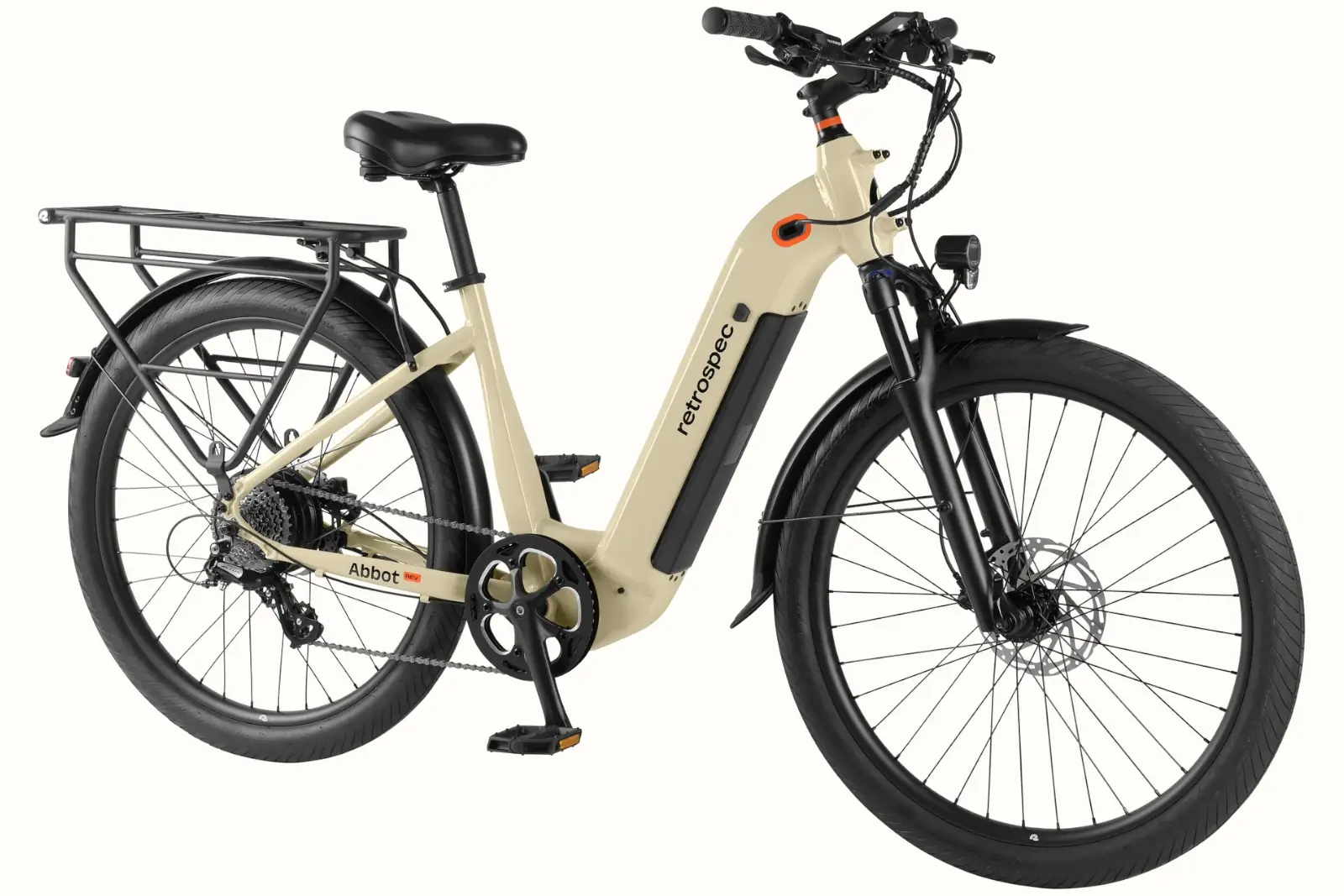 If you need to cover a longer distance, opt for the Abbot Rev. Offering a maximum range of 72 miles, this e-bike can travel the farthest distance on a single charge of all the e-bikes in the Retrospec line. Whether you have a long ride to the office or want to hit the farmer’s market on the other side of town, the bike’s powerful 720Wh integrated battery can help get you there.