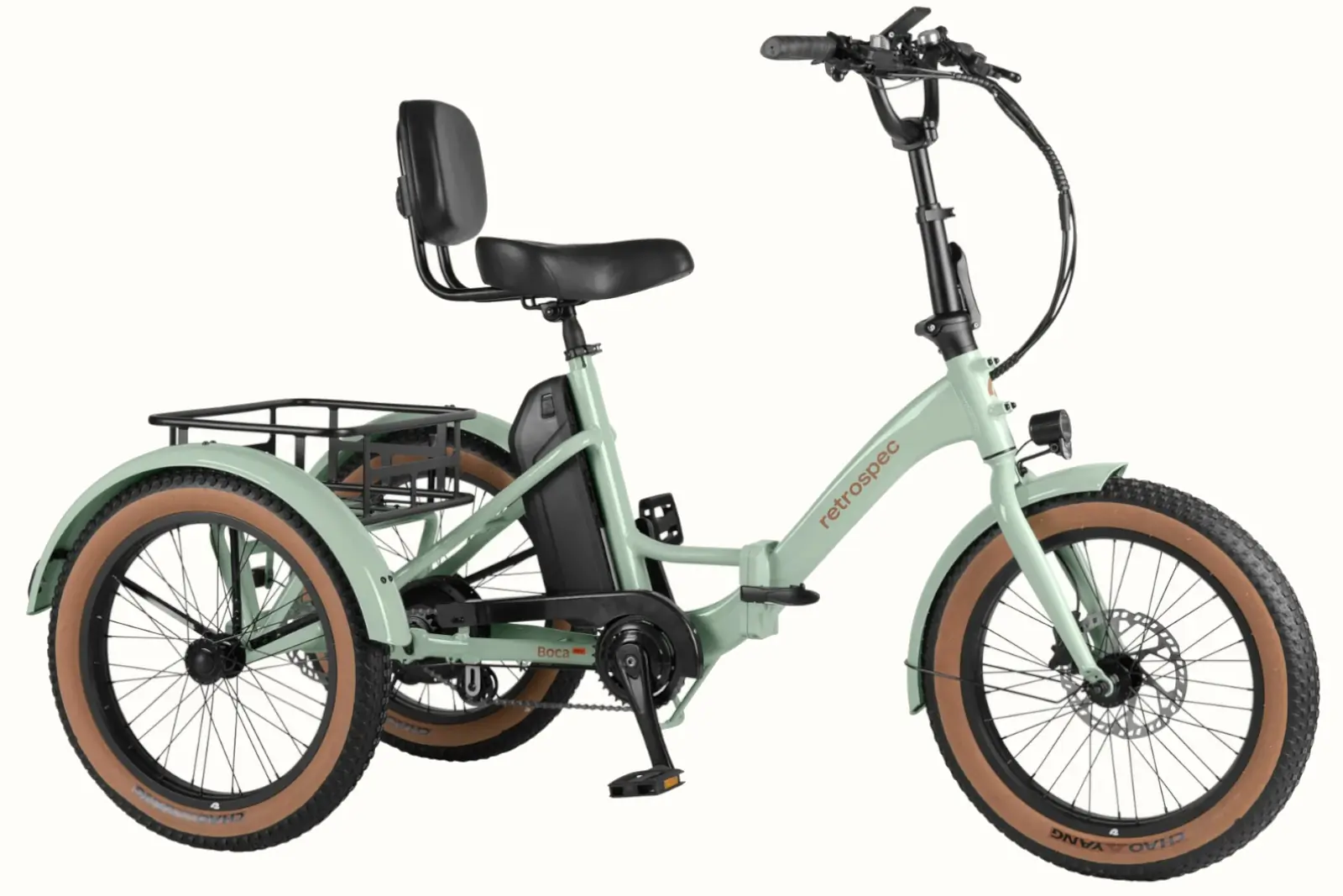 Tricycles aren’t just for kids. If you’re looking for added stability, the Boca Rev e-trike delivers. In addition to three 20″ x 3″ tires, the tricycle has a cushioned seat with a backrest for even more comfort and confidence as you ride.