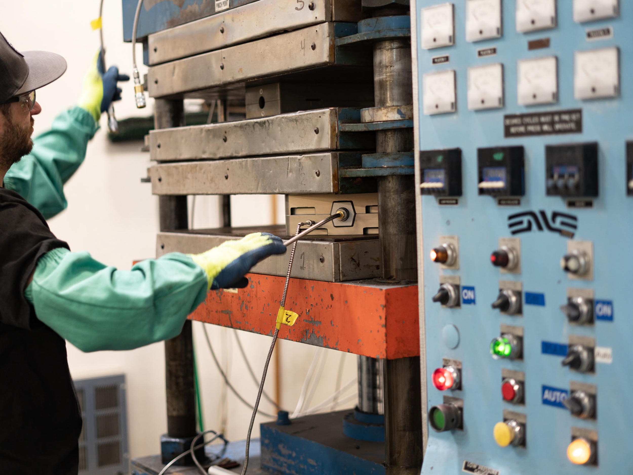 Skilled workers heat the clamshell molds, carbon layup, and internal bladder to activate the pre-impregnated epoxy resin. During this process, the builder pressurizes the inner bladder to press the carbon against the interior mold walls to reduce voids. These voids can produce weak areas if they are still present when the epoxy resin cures.