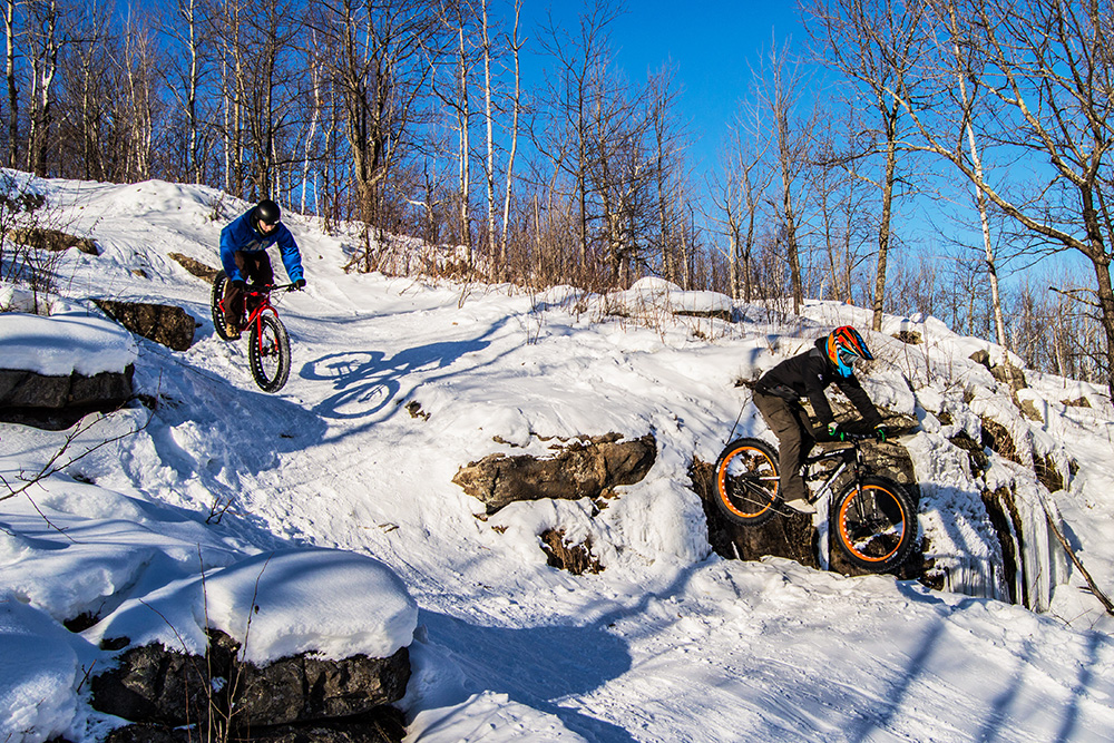 We soon will. On March 4th and 5th, Spirit Mountain in Duluth, Minn., will host the second Frosted Fatty Weekend. Two days of fatbike demos, XC bike races, music, and for the first time, dual head-to-head slalom races pitting skis against snowboards against fat tires.