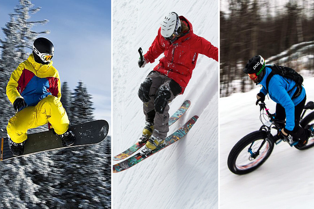 skier snowboarder fatbiker
