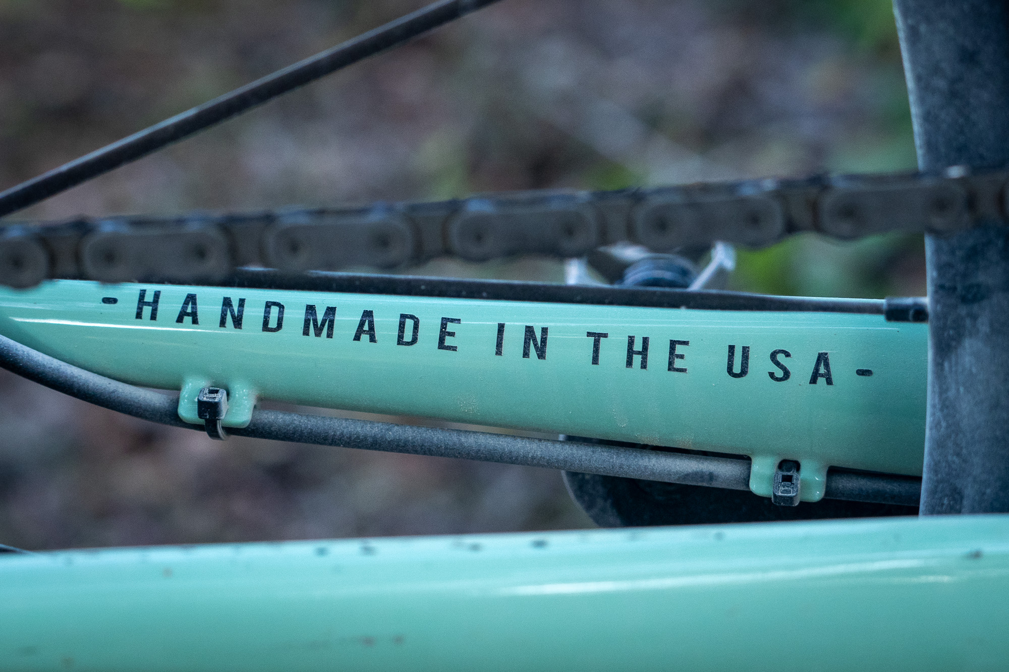 My 56cm sample weighs a verified 21.3 pounds without pedals or bottle cages. The mint paint is stunning, reminding me of Bianchi’s famous celeste color. The frame also has quirky and fun graphics and statements that reminded me that a small group of people built this bike.