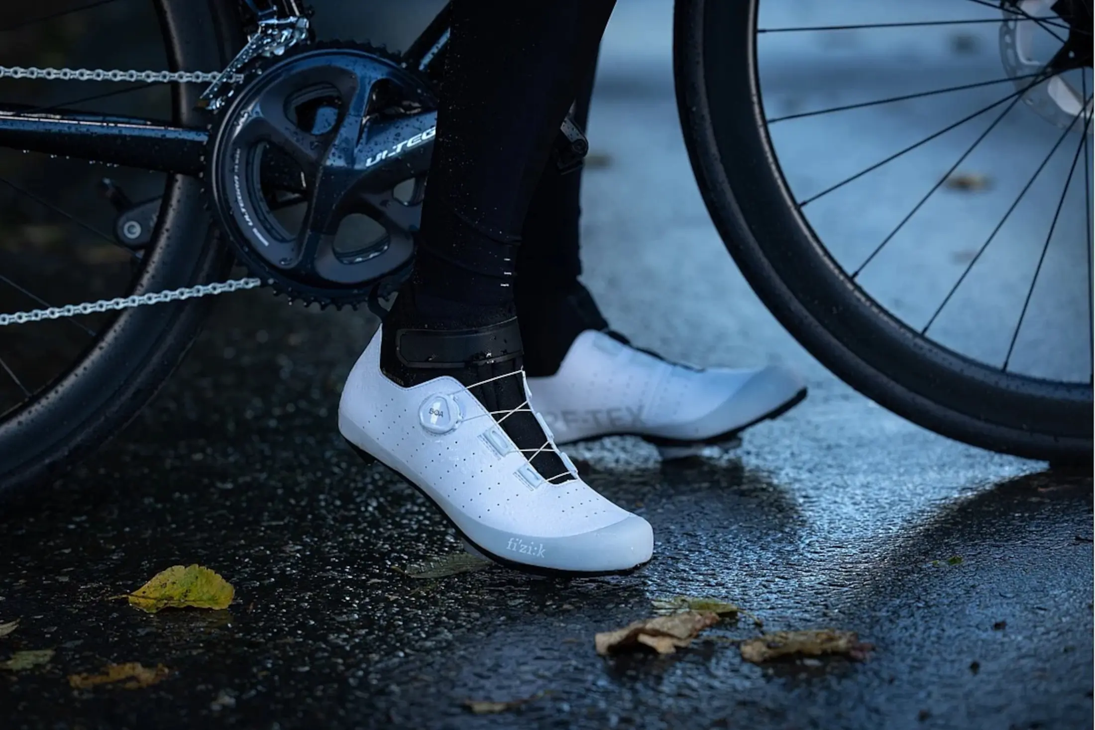Winter rides are often windy and wet. To help counter those chilling factors, Fizik created the road-specific R5 Tempo Artica GTX, which combines insulation with waterproof-breathable protection from GORE-TEX for warmer, drier feet on winter rides.