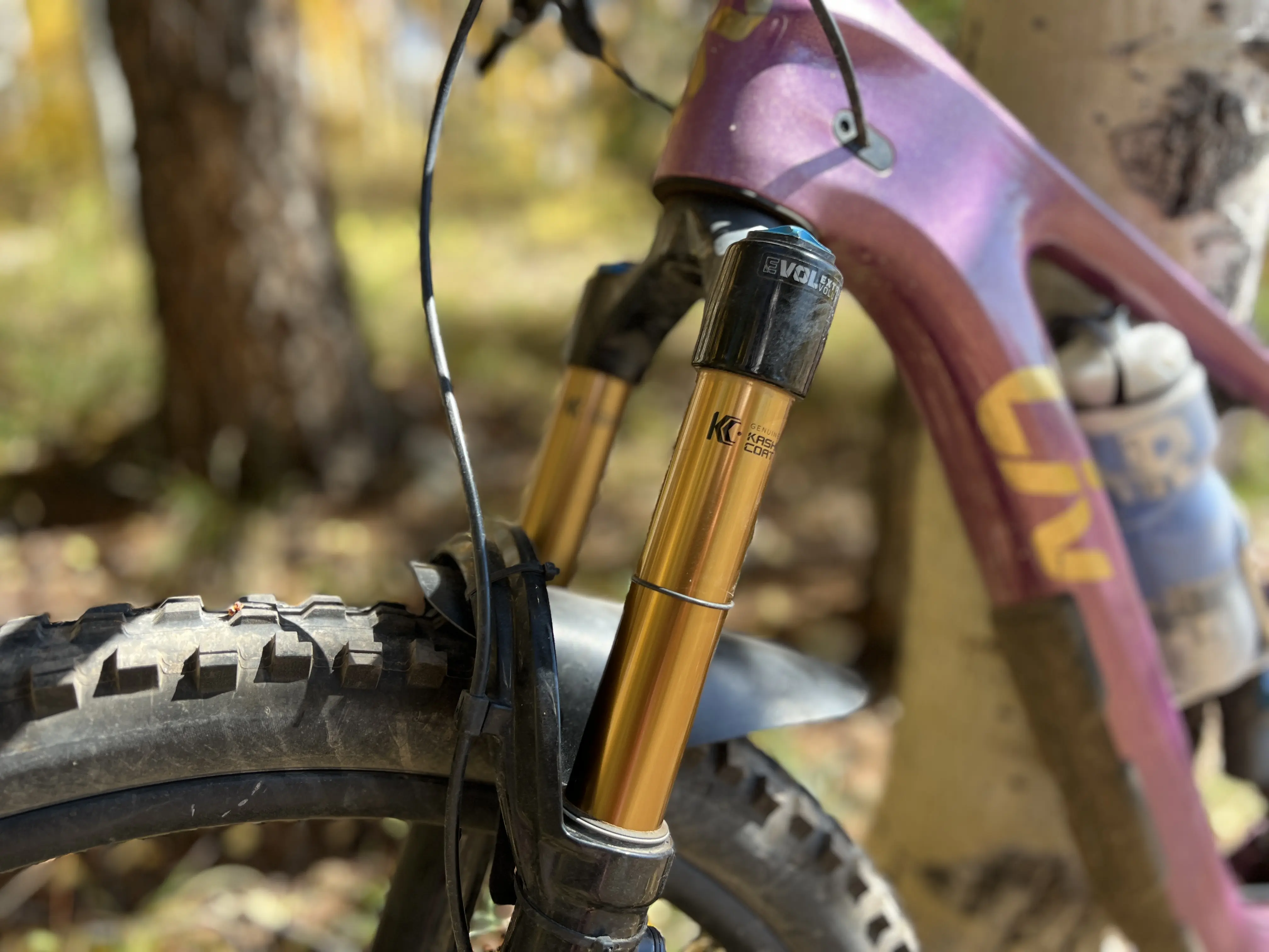 On my first ride, the suspension wasn’t responsive enough and felt sluggish, even though the sag was set correctly. A local mechanic removed one of the two internal tokens inside the front fork to help match my preferences. Tokens reduce air volume in the chamber and influence the suspension travel rate at the end of the stroke.