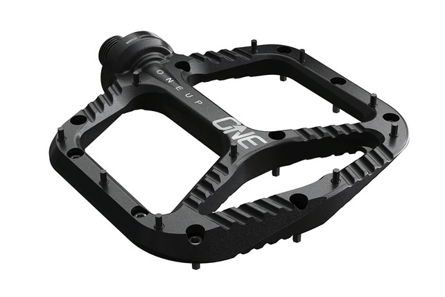 The OneUp Components Aluminum pedals offer a well-rounded performance with a convex profile; (photo/Paul Clauss)