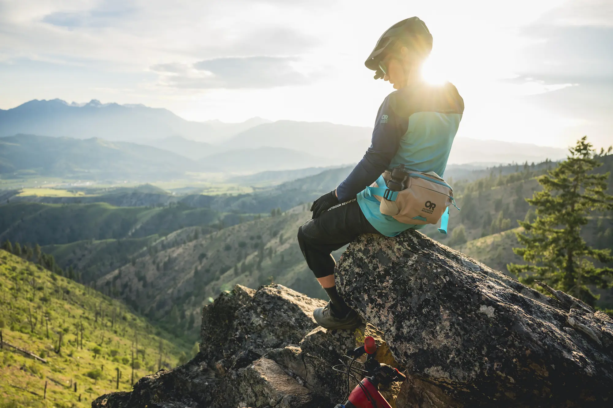 Led by a new mountain biking short, the collection also features a short-sleeve and long-sleeve top, a half-zip hoodie, two differing pairs of gloves, and two hip packs. The design team leans heavily on proven fabrics and materials already in the OR stable, but certainly added twists and tweaks that are new to the brand and industry.