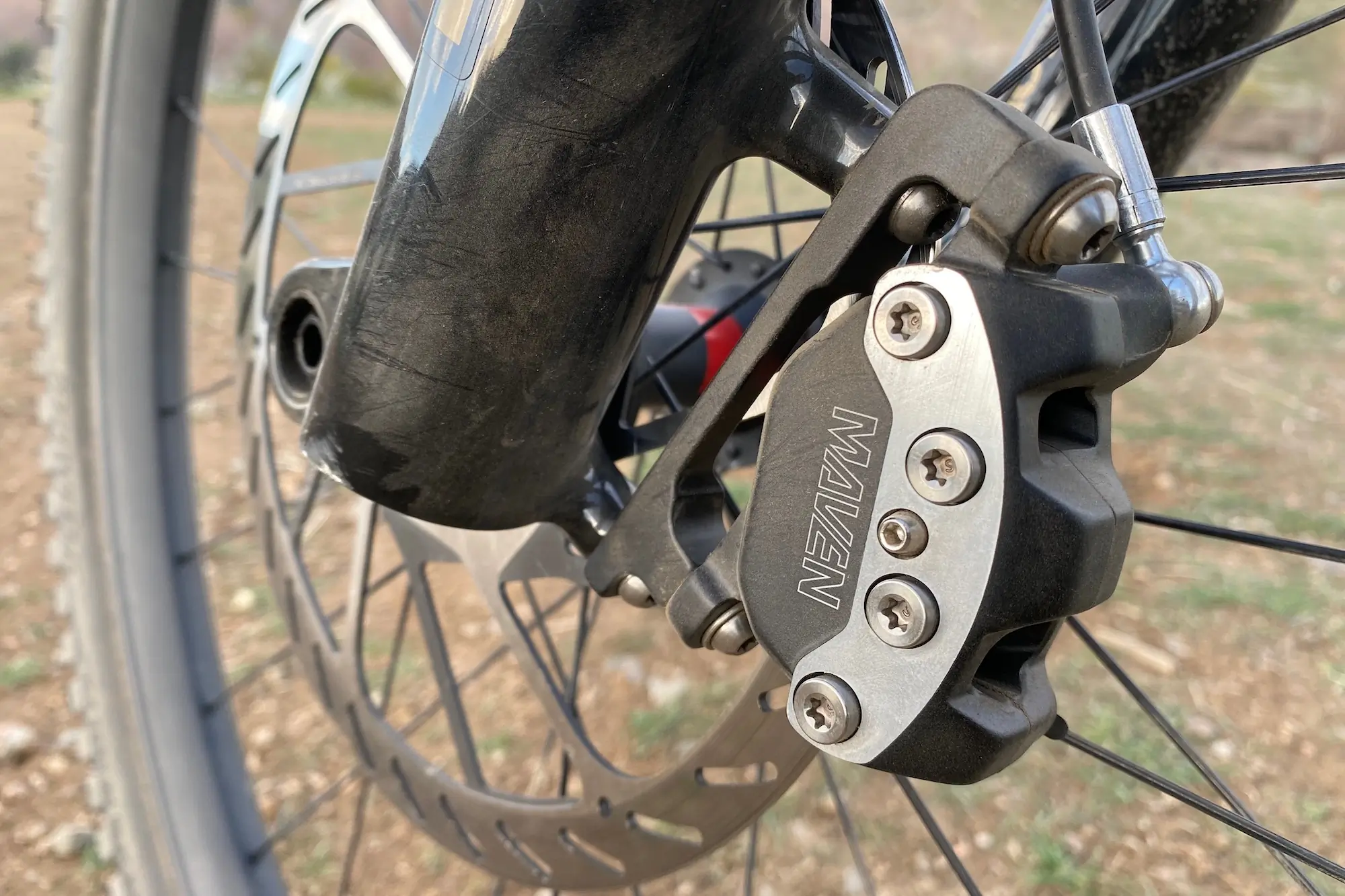 First, I’m all for powerful brakes, but the Maven Ultimate brakes, especially with the 220mm rotor in the front, were too powerful for me. Other riders might love having all that stopping power, but I found that it actually decreased my control, as just a tiny tap was causing my front wheel to break traction in certain conditions. This issue could probably be remedied by downsizing both rotors, but that’s an added expense.