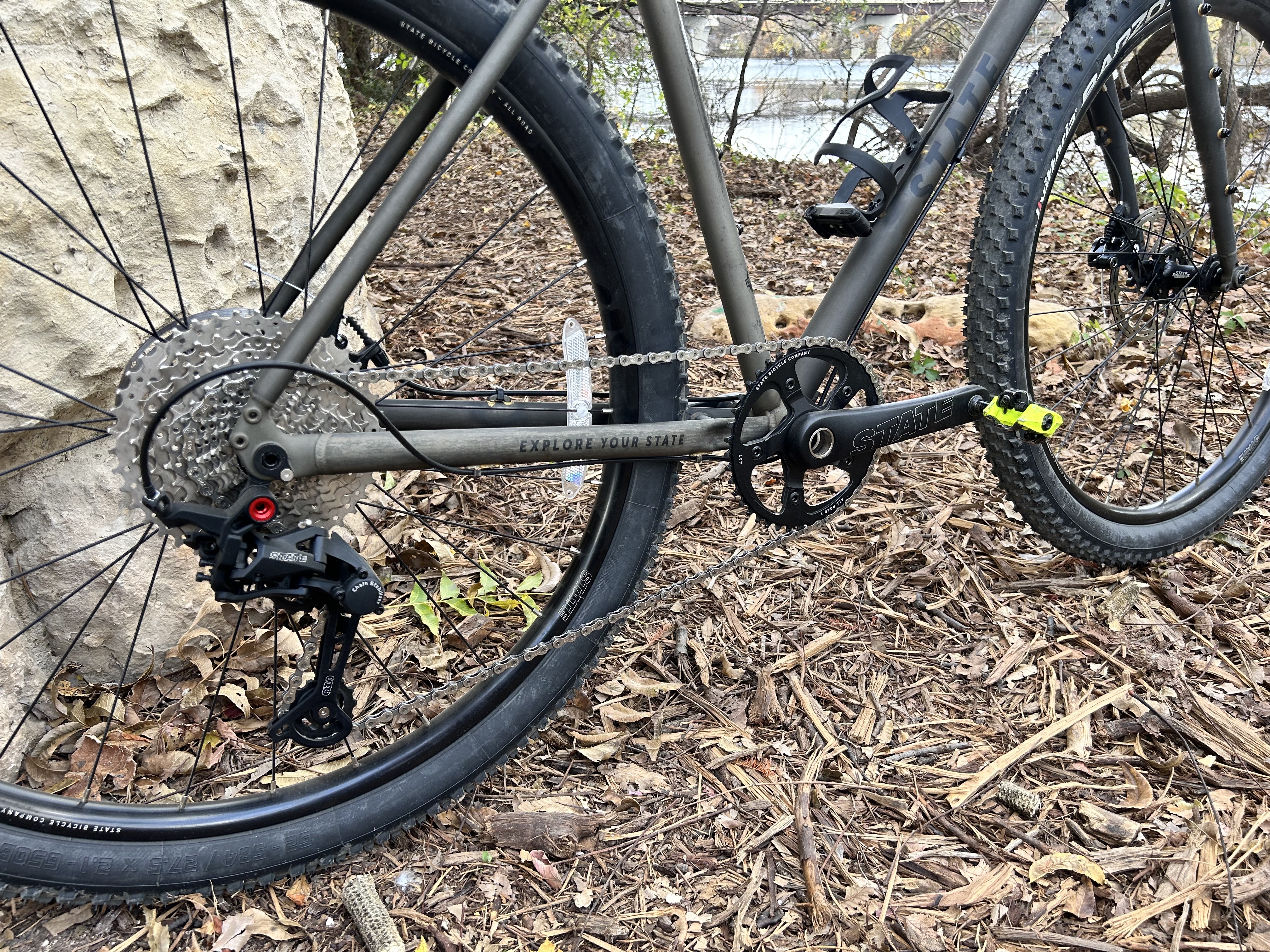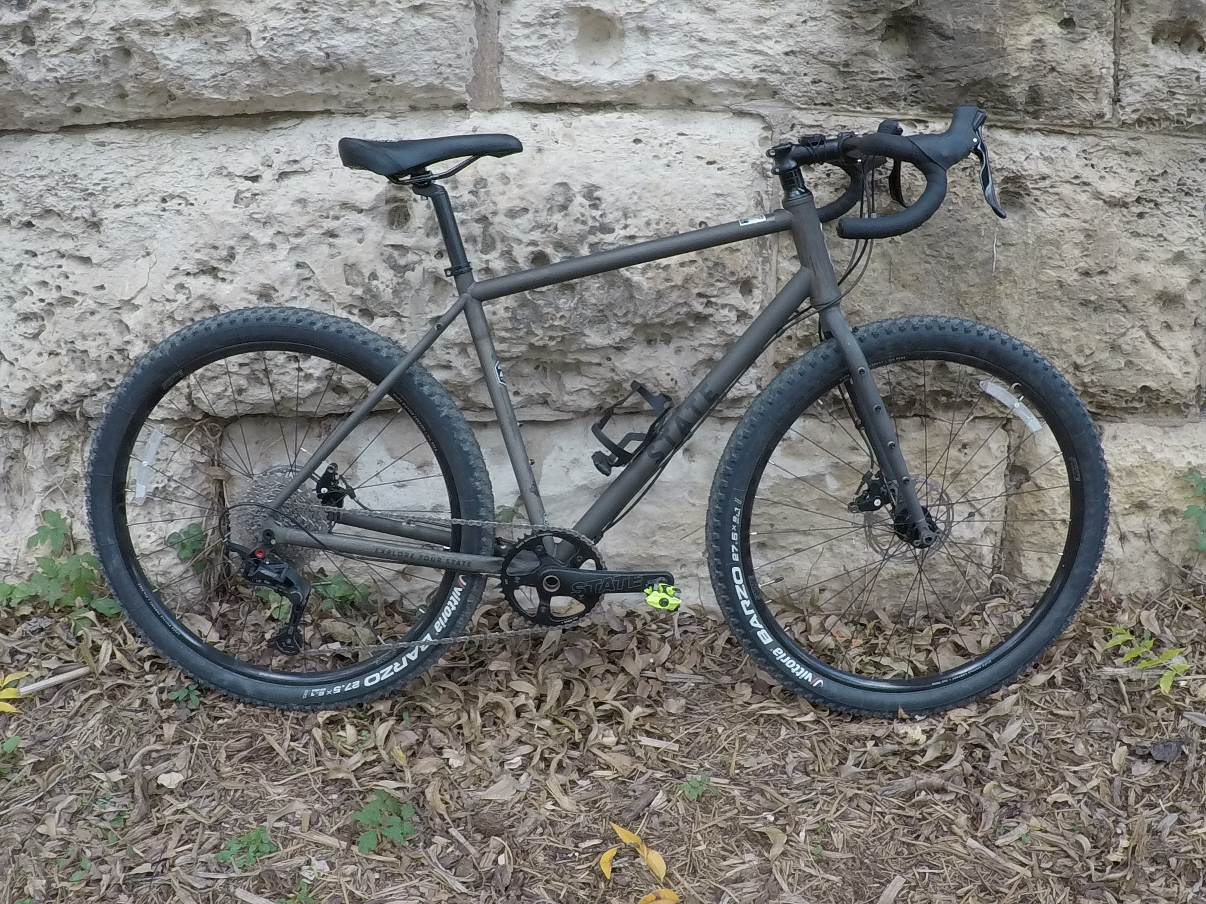 The bike included a State-branded 1×11 drivetrain with a 42t chainring, an 11-42t cassette, and State-branded mechanical disc brakes.