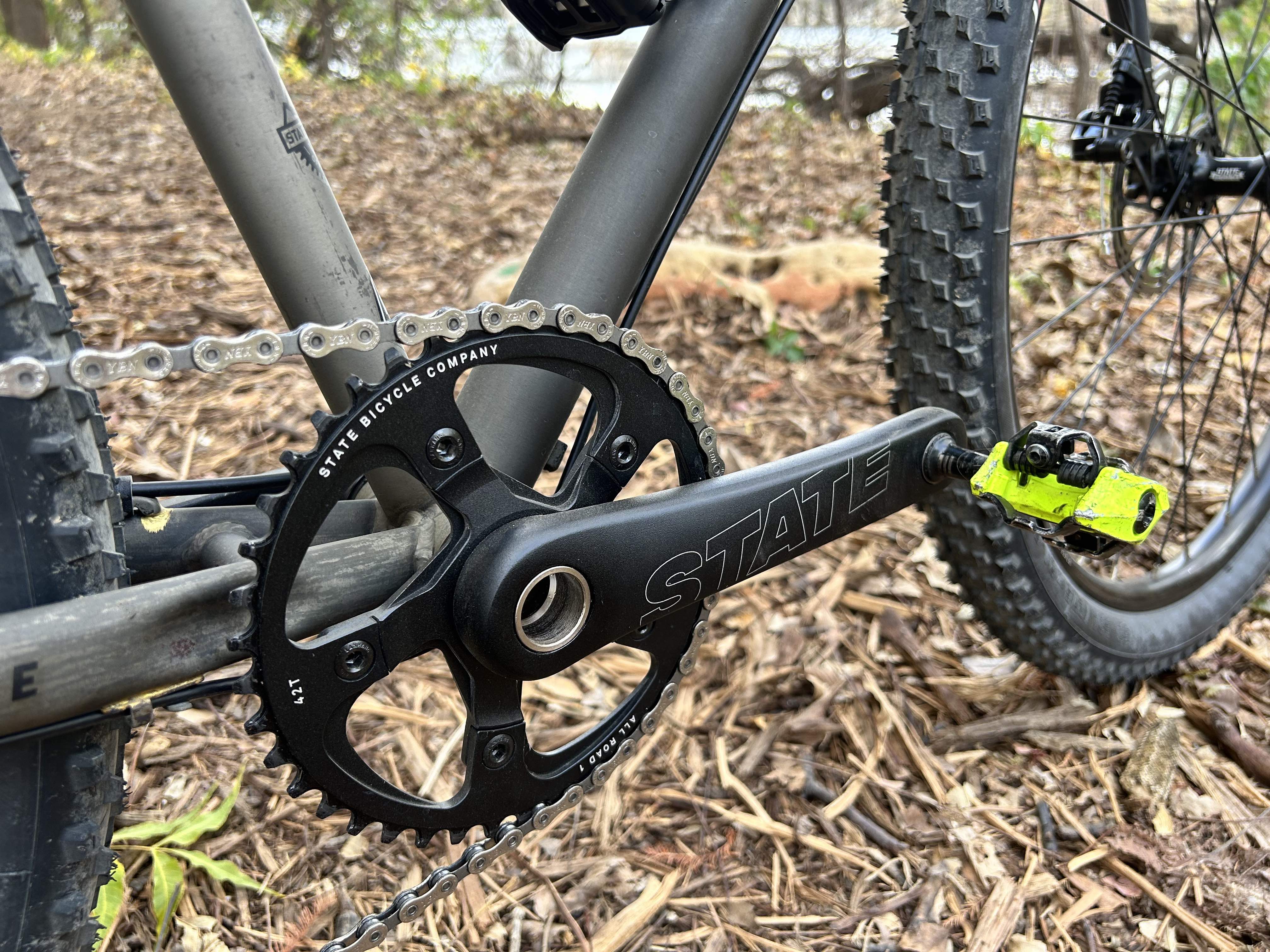 - Drivetrain: State Bicycle Co. 1x, 42t x 11-42